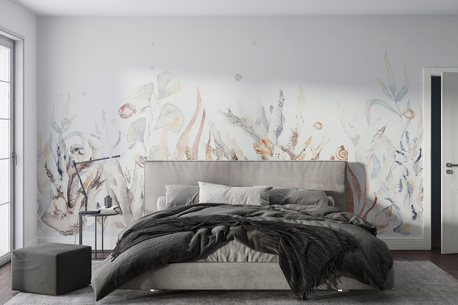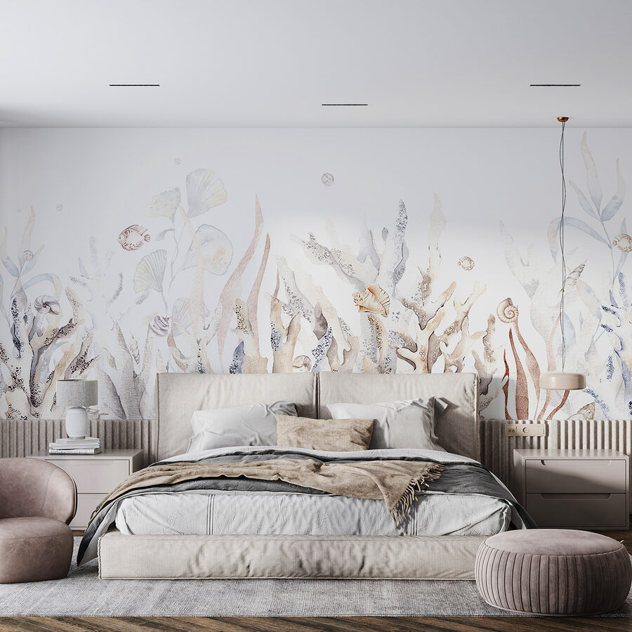 Imagine entrar en su habitación y sentir que acaba de entrar en un encantador paraíso submarino. El mural de pared “Jardín submarino con conchas y peces” es como tener un trozo del océano en casa. Con sus colores serenos y sus delicados detalles, es perfecto para relajarse después de un largo día. Casi se puede sentir la fresca brisa marina y oír las suaves olas, ¿verdad?