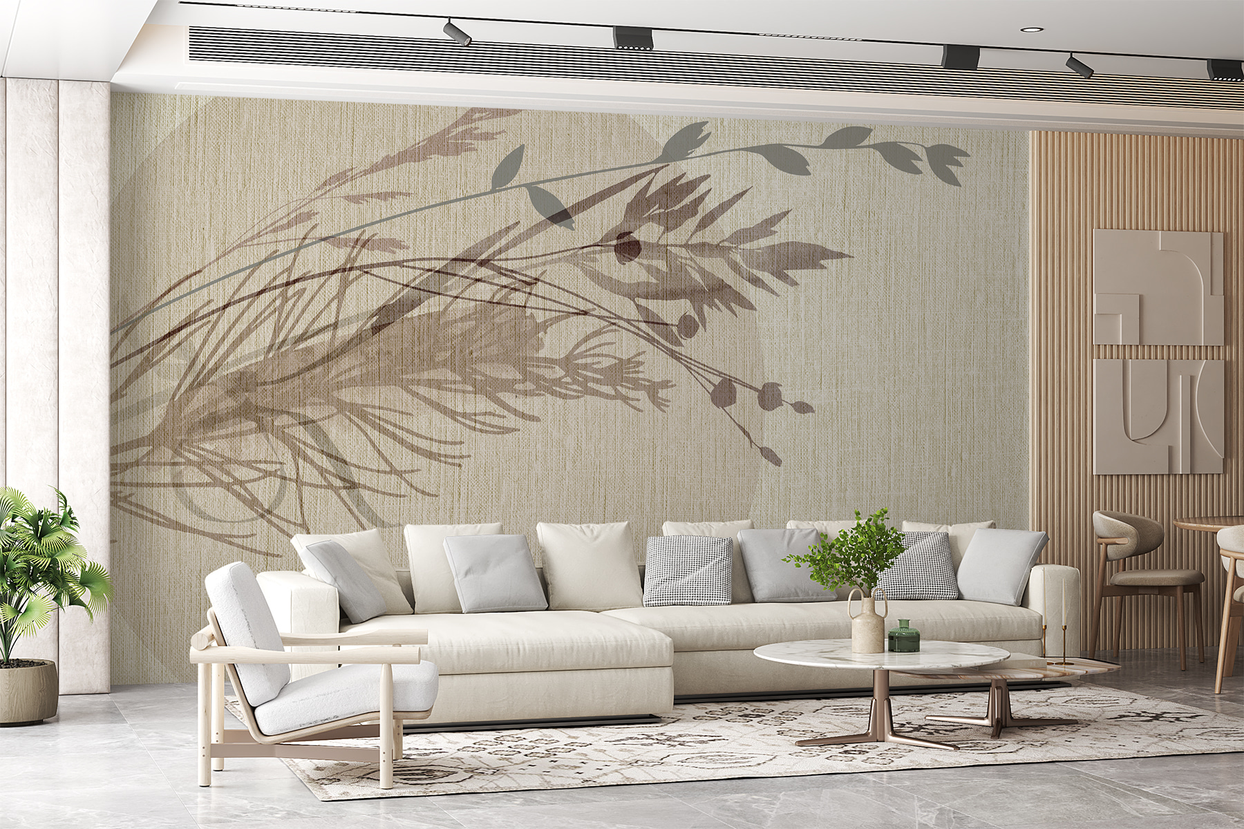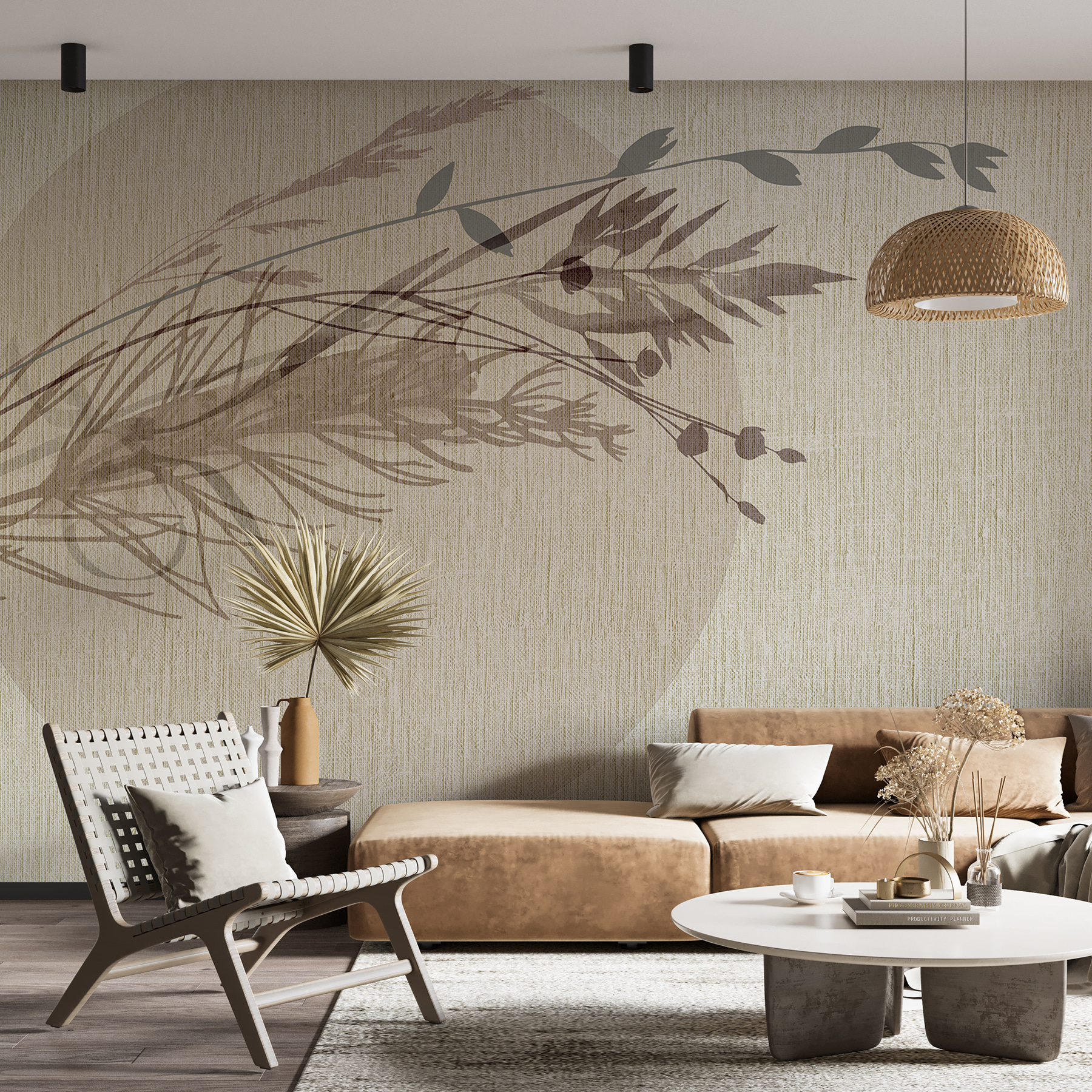 ¿Alguna vez ha querido dar un toque de calma y naturaleza a su interior sin complicaciones? Este mural “Sombra de una hoja sobre una superficie de tela” es como un suave susurro de la naturaleza directamente en su pared. Imagínese relajándose en su sillón favorito, sintiendo el sol e imaginando las hojas meciéndose suavemente en un día de pereza. Los sutiles tonos tierra y los delicados diseños de las hojas crean un ambiente acogedor y atemporal perfecto para cualquier habitación. Es como tener un momento de serenidad al aire libre, sin los insectos y el tiempo impredecible. Perfecto para hacer que su espacio se sienta cálido y acogedor, casi como su zona zen personal.