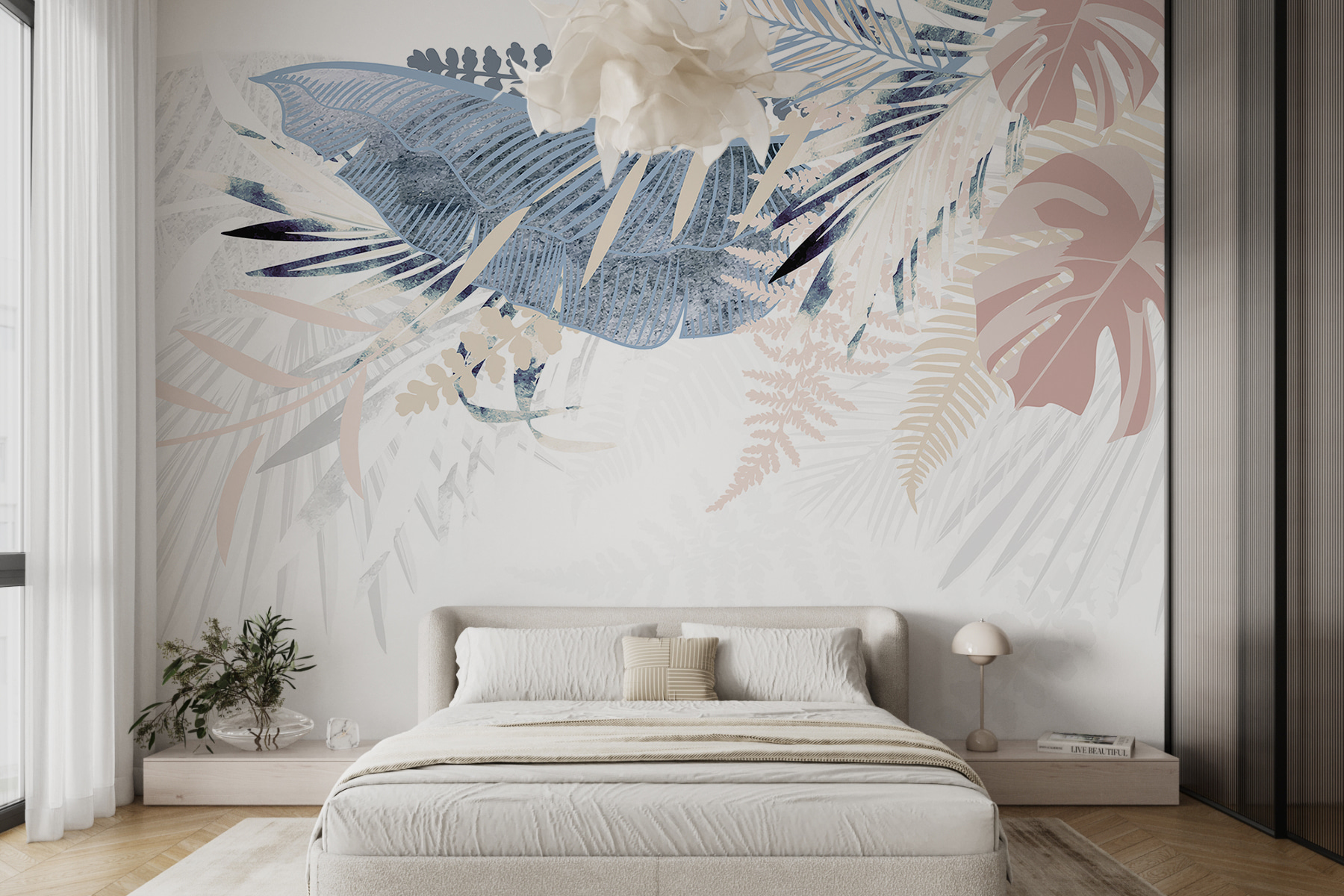 ¡Echa un vistazo a este impresionante “Murales de Pared Diseño Abstracto de Follaje Tropical”! Es como un soplo de aire fresco para cualquier habitación, transformando instantáneamente su espacio en un exuberante refugio artístico. Las hojas de palmera superpuestas y las delicadas plantas tropicales, en tonos suaves y fríos, ofrecen una mezcla perfecta de tranquilidad y sofisticación. Imagínese tomando su café matutino o relajándose con un libro, rodeado de esta serena atmósfera selvática.