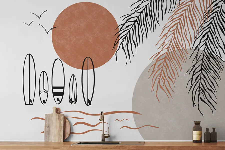 Así que, si lo que quieres es llevar un trocito de paraíso a tu vida cotidiana, este mural puede ser la solución perfecta. Es como un suave recordatorio para respirar, relajarse y tal vez planear su próxima escapada a la playa. La vida es demasiado corta para tener paredes aburridas.