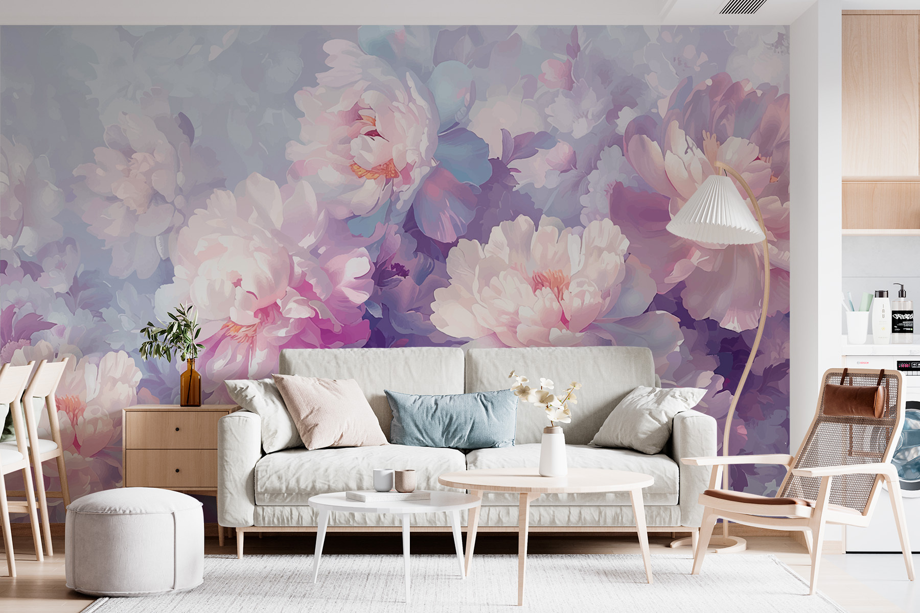 Perfecto para cualquier espacio que anhele un ambiente suave y artístico: dormitorios, salones o incluso un acogedor rincón de lectura. La mezcla de tonos pastel suaves y flores vibrantes invita a soñar despierto y en paz. Además, tiene un delicioso efecto de acuarela -piensa en ligeras pinceladas y sutiles sombreados- que le da un toque caprichoso. No es sólo una pared; es una experiencia, un acogedor abrazo de la naturaleza en tu propia casa. Este mural no sólo decora, sino que transforma, haciendo que cada día se parezca un poco más a la primavera.