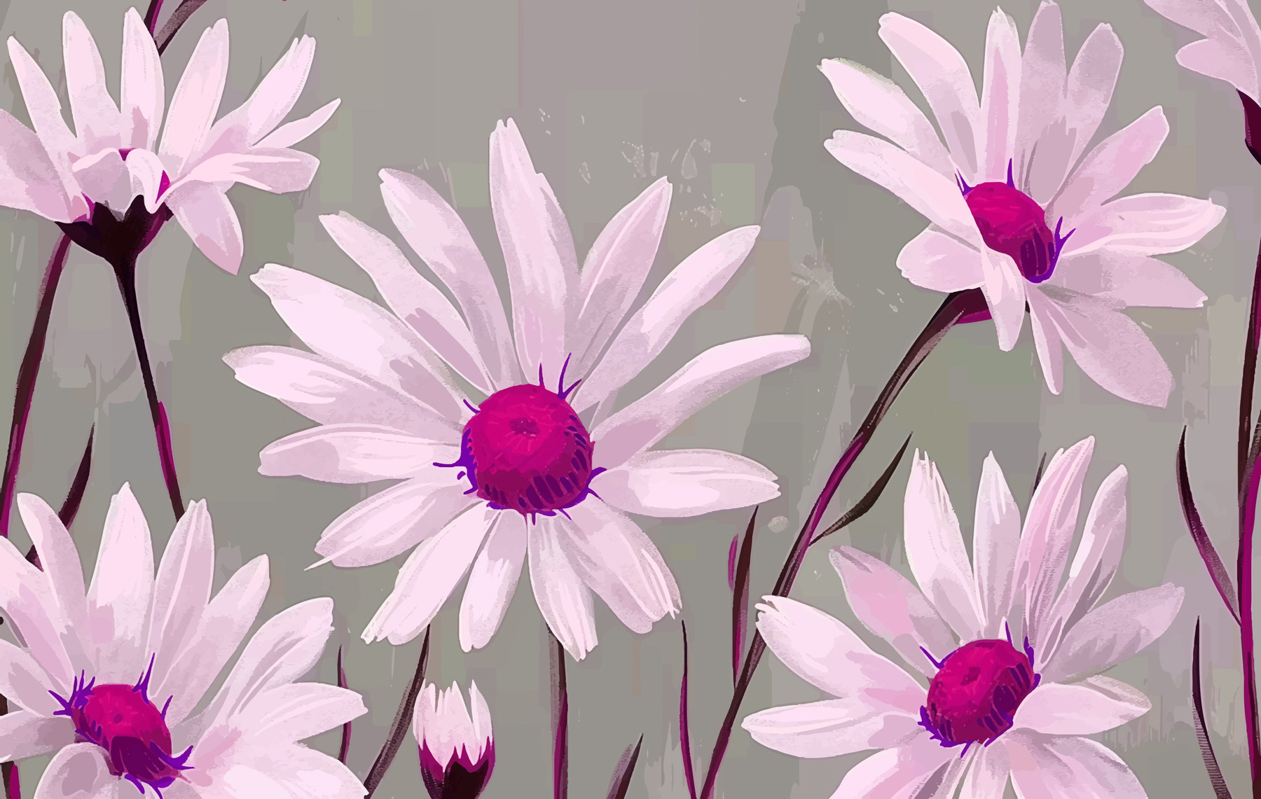 Transforme cualquier habitación con este mural de pared de ensueño que presenta un encantador grupo de flores blancas, cada una con un caprichoso centro morado. Es como un soplo de aire fresco que trae la naturaleza a su hogar. Imagínese entrar en un espacio donde las flores vibrantes bailan en las paredes, levantando al instante el estado de ánimo. Perfecto para un rincón acogedor, una sala de estar alegre, o incluso esa pared que sólo necesita un poco de dinamismo. Es difícil no sonreír ante estos encantadores pétalos. Dale a tus paredes el amor que se merecen: ¿quién iba a pensar que la decoración floral podía ser tan divertida?