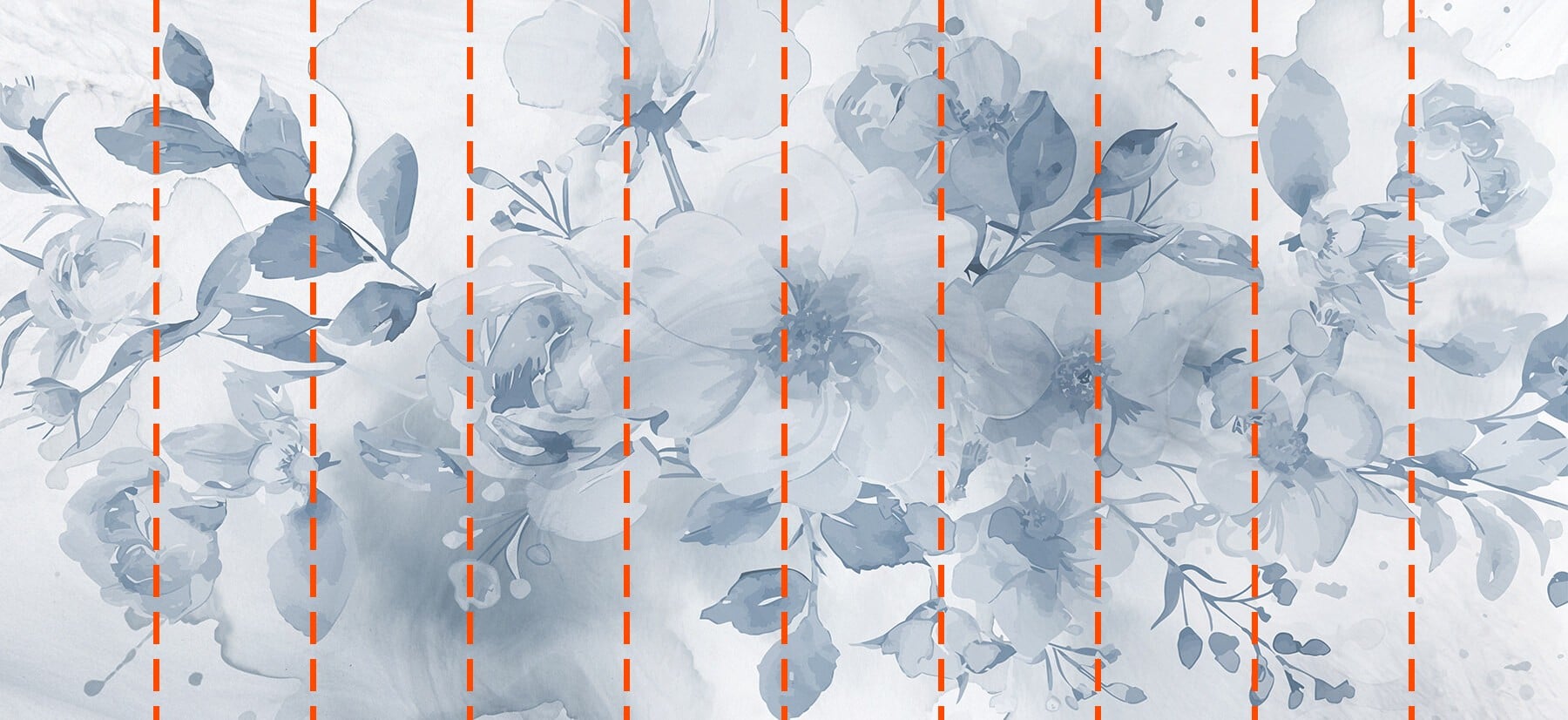 Tu papel pintado se preparará según las dimensiones que nos hayas facilitado durante el proceso de pedido. El lienzo se dividirá en cómodas secciones de hasta 50 cm de ancho cada una.