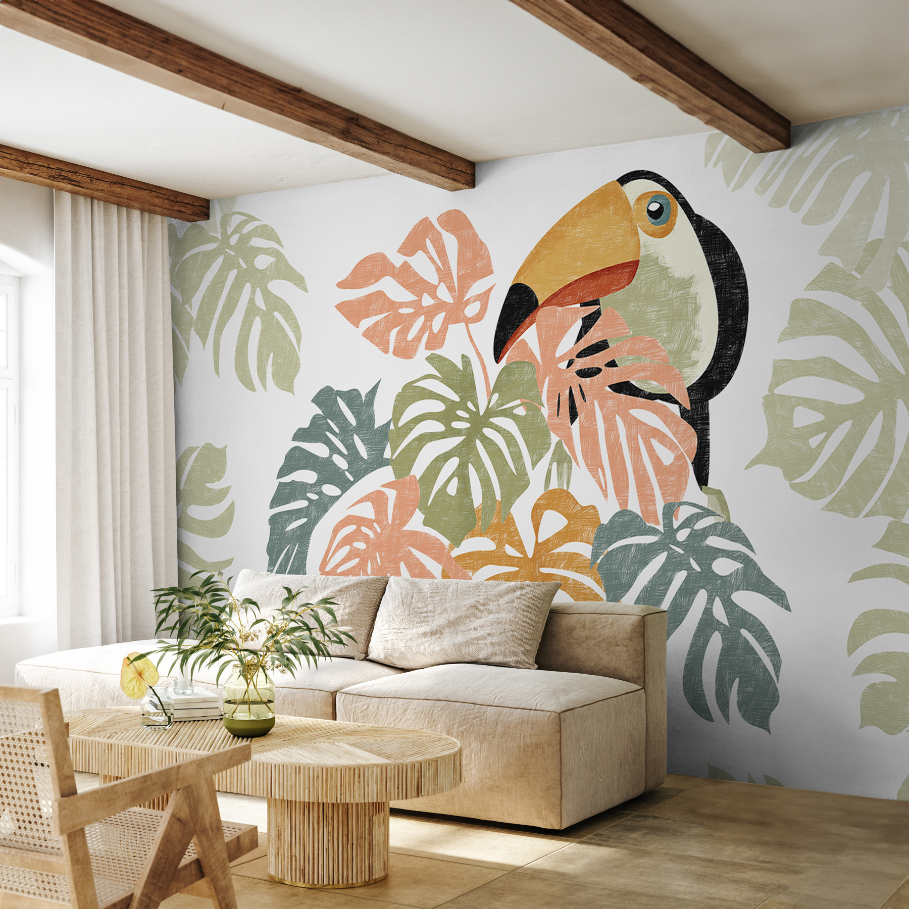 Conozca su nuevo mural de pared favorito: “Murales de pared w01009”. Es como tener un trozo del trópico en tu salón. Este diseño presenta vibrantes loros que se esconden entre las hojas de la selva, aportando un ambiente juguetón a la vez que sofisticado. Imagínese descansando en su espacio, tomando una bebida refrescante, sintiéndose como si estuviera en unas minivacaciones en el corazón de un exuberante paraíso.