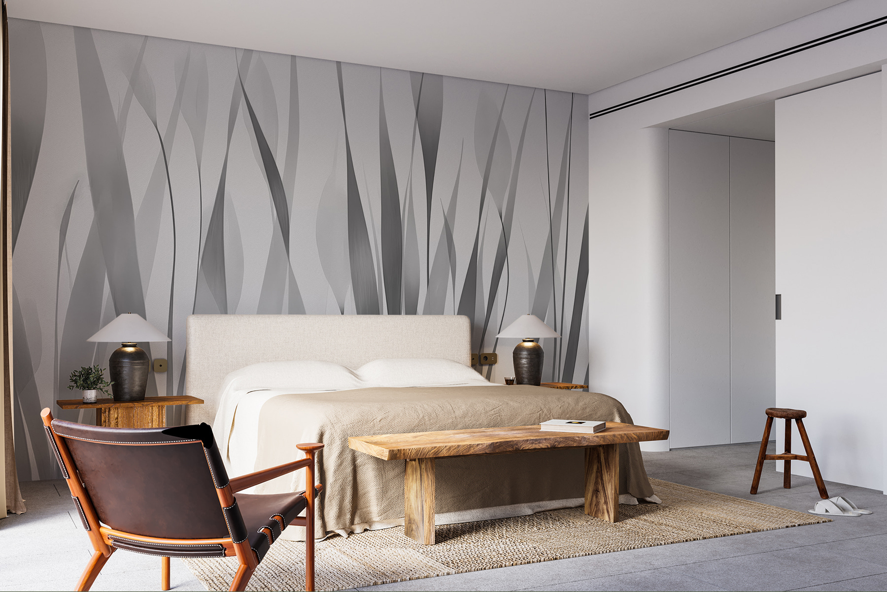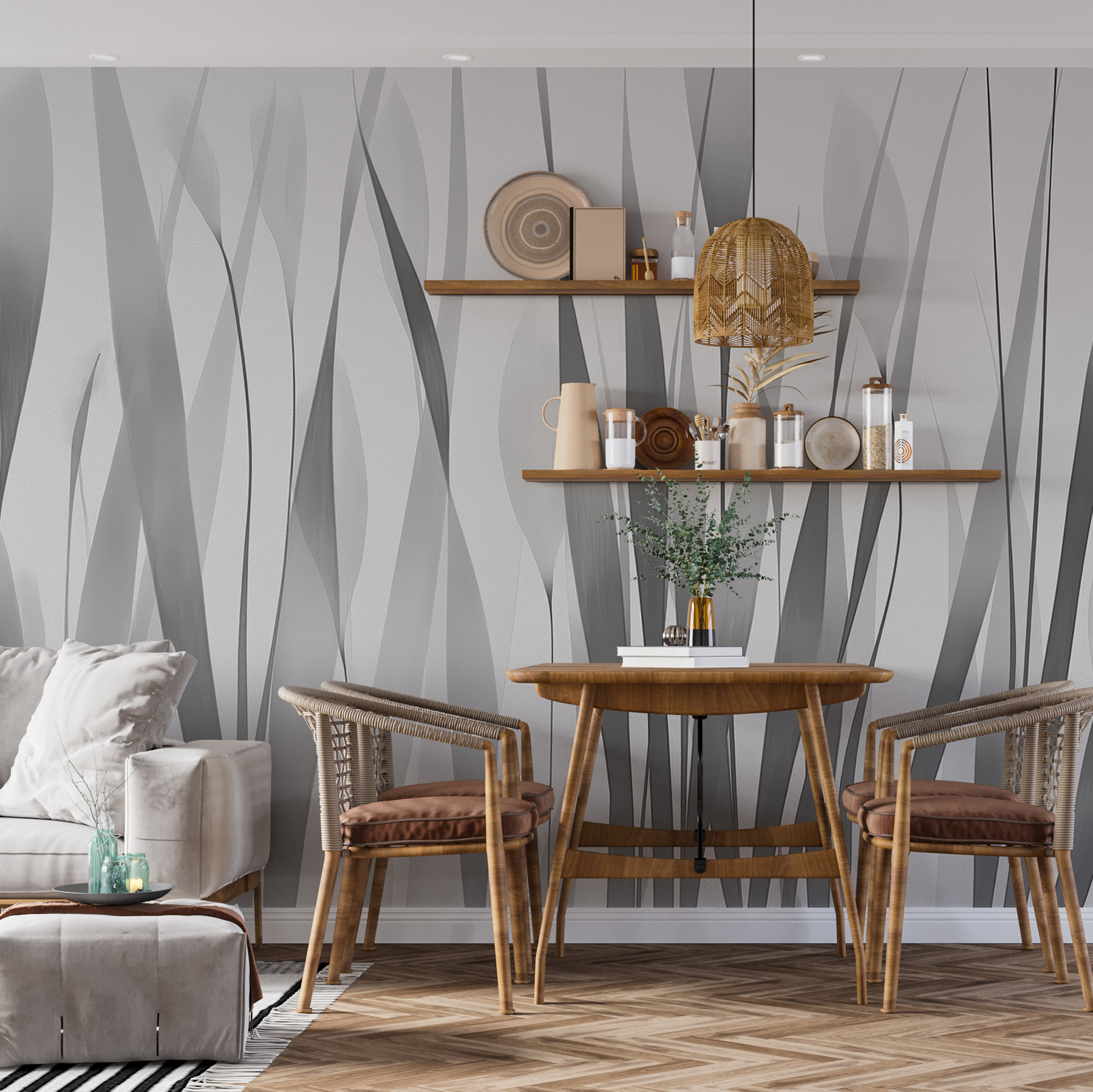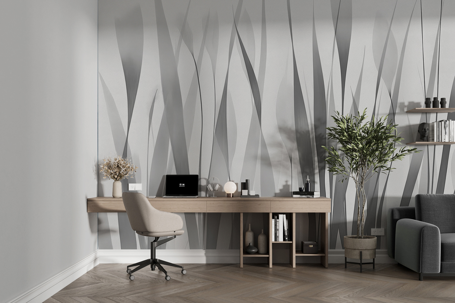 Transforme cualquier habitación con este impresionante mural de pared en gris y blanco que presenta un conjunto de ensueño de siluetas de plantas. Es como traer un soplo de aire fresco a su espacio. Imagínese relajándose en un rincón acogedor, rodeado de estas formas suaves y elegantes que se mecen con la luz: vibraciones seriamente calmantes. Ya sea en un elegante salón o en un tranquilo dormitorio, este mural añade un toque de arte moderno a la vez que mantiene la calma. Además, es un gran tema de conversación. Tus amigos te preguntarán de dónde es. ¿Quién diría que la decoración podría ser tan sofisticada?