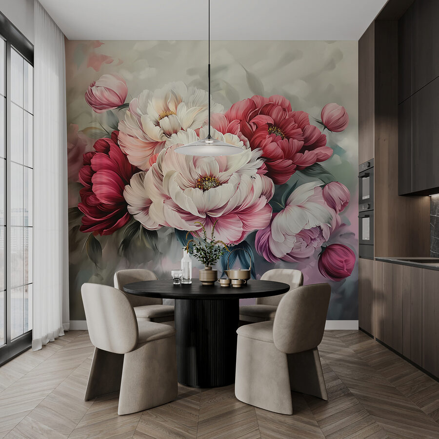 Transforme una pared en blanco en un paraíso floreciente con este vibrante mural de pared con impresionantes flores. Imagínese entrar en un espacio vivo, donde cada pétalo parece bailar e invitar a la alegría. Tanto si se trata de un rincón acogedor como de un animado salón, este mural añade el toque perfecto de personalidad. Imagínese una tarde lluviosa, una taza de café caliente y la belleza de las peonías en flor. Es como tener un jardín dentro de casa, sin necesidad de regar. Un telón de fondo único que puede hacer que todos los días parezcan primavera.