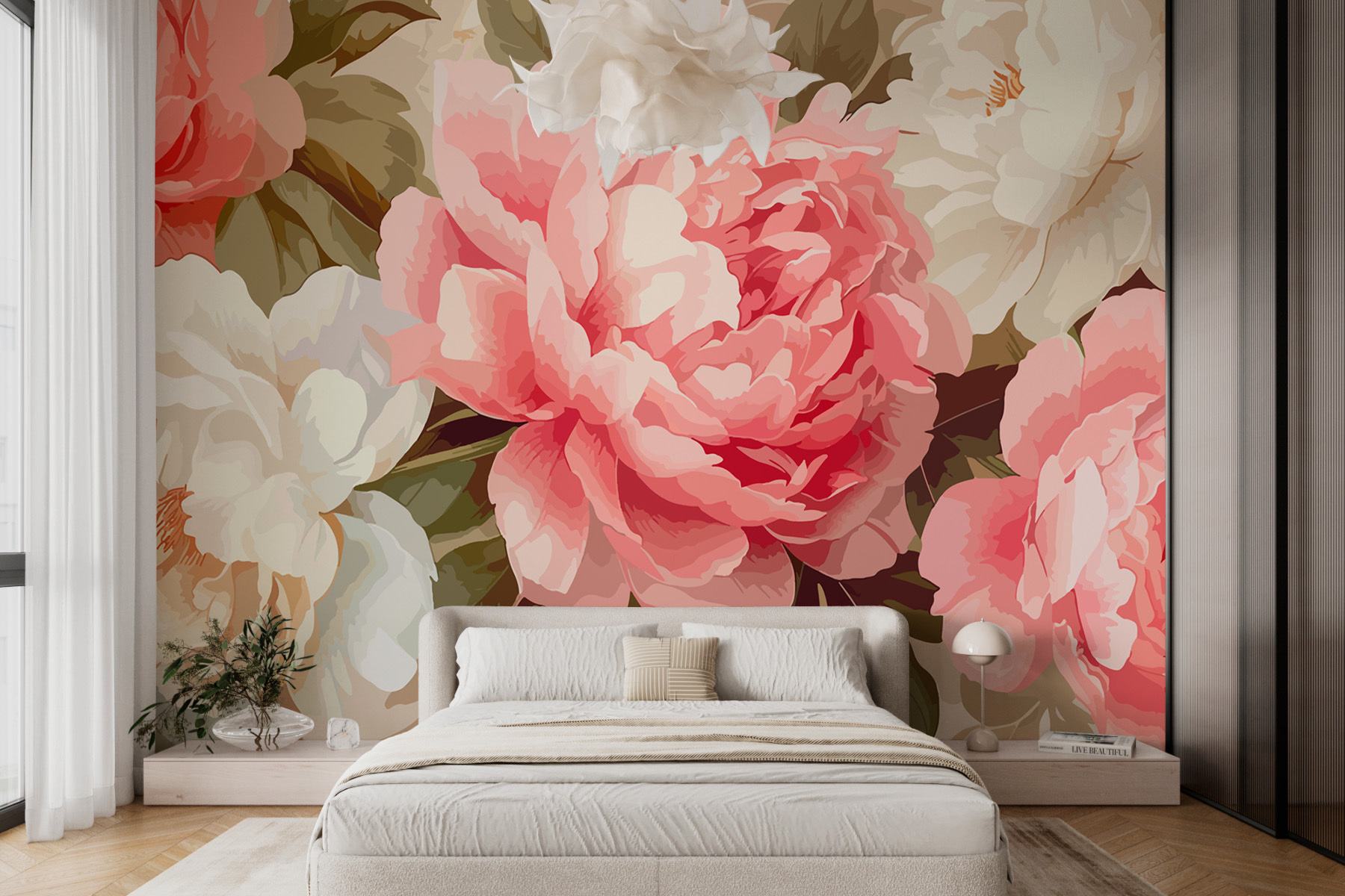 Imagine dar la bienvenida a un toque de naturaleza en su hogar con el mural “Peonías en flor en tonos suaves”. Es como entrar en un jardín cada día. Estas peonías no se quedan ahí, sino que prácticamente bailan por la pared en tonos pastel de ensueño. Perfecto para aquellos que adoran un poco de encanto floral sin necesidad de tener un pulgar verde. Colócalas en un rincón tranquilo; te susurrarán tranquilidad cada vez que las mires. ¿Quién iba a decir que las peonías podían ser tan encantadoras? Te levantarán el ánimo al instante, sin necesidad de regarlas.