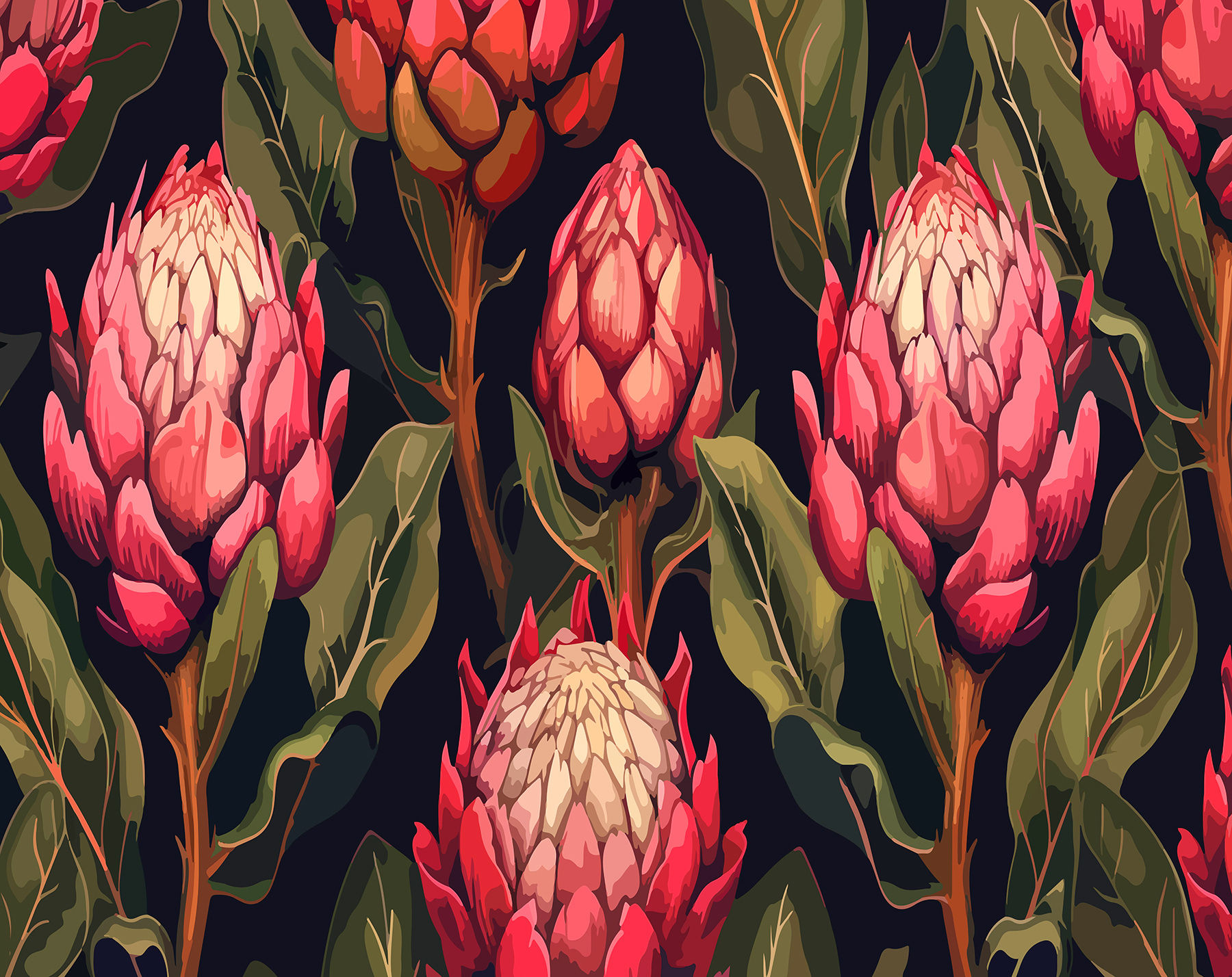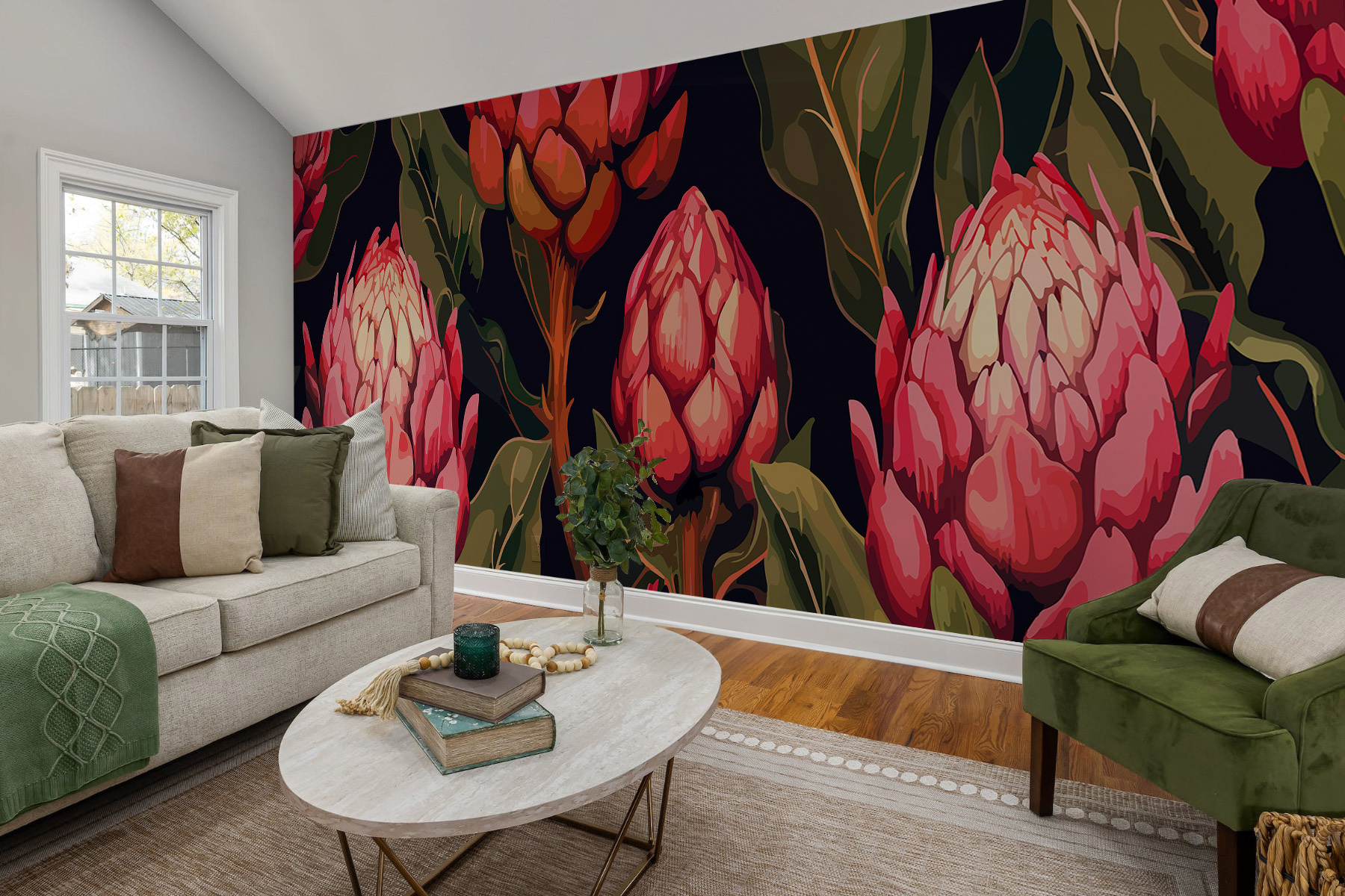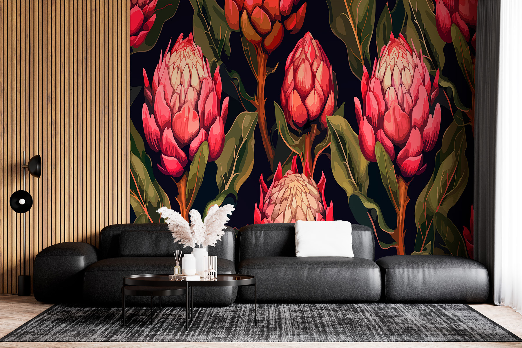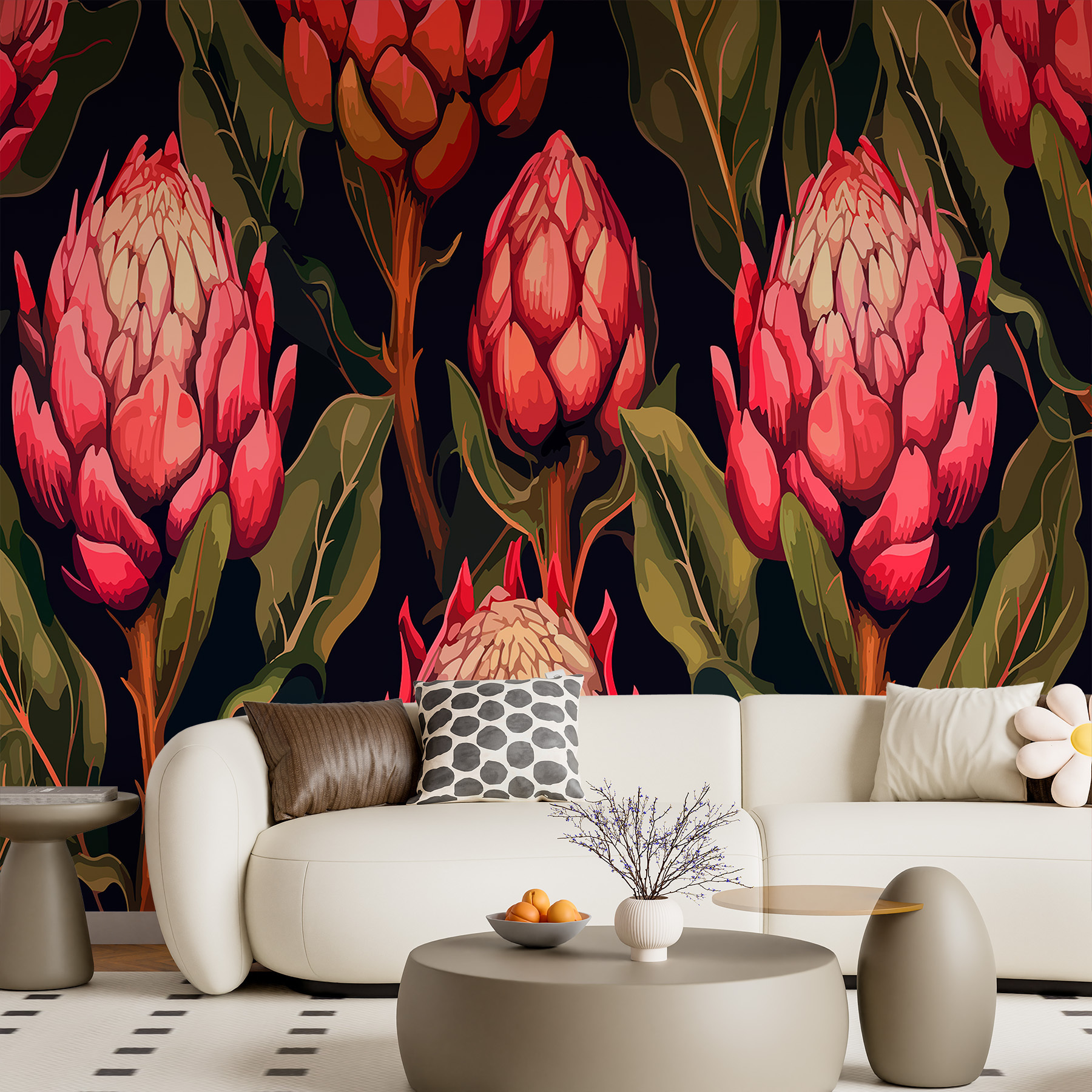 Transforme cualquier pared en un vibrante oasis con el mural Blooming Proteas. Imagínatelo: un estallido de colores vivos y llamativos diseños florales que prácticamente bailan por tu espacio. Es como traer un trocito de naturaleza al interior, sin la regadera ni las molestas alergias al polen. Este mural no se queda ahí: suscita conversaciones y levanta el ánimo. Imagine veladas acogedoras, amigos admirando la belleza o mañanas tranquilas tomando café, sintiéndose rodeado por un exuberante jardín. Ya sea en un salón o en un rincón acogedor, este mural invita a la calidez y la alegría. Perfecto para cualquier lugar que necesite un toque de personalidad.