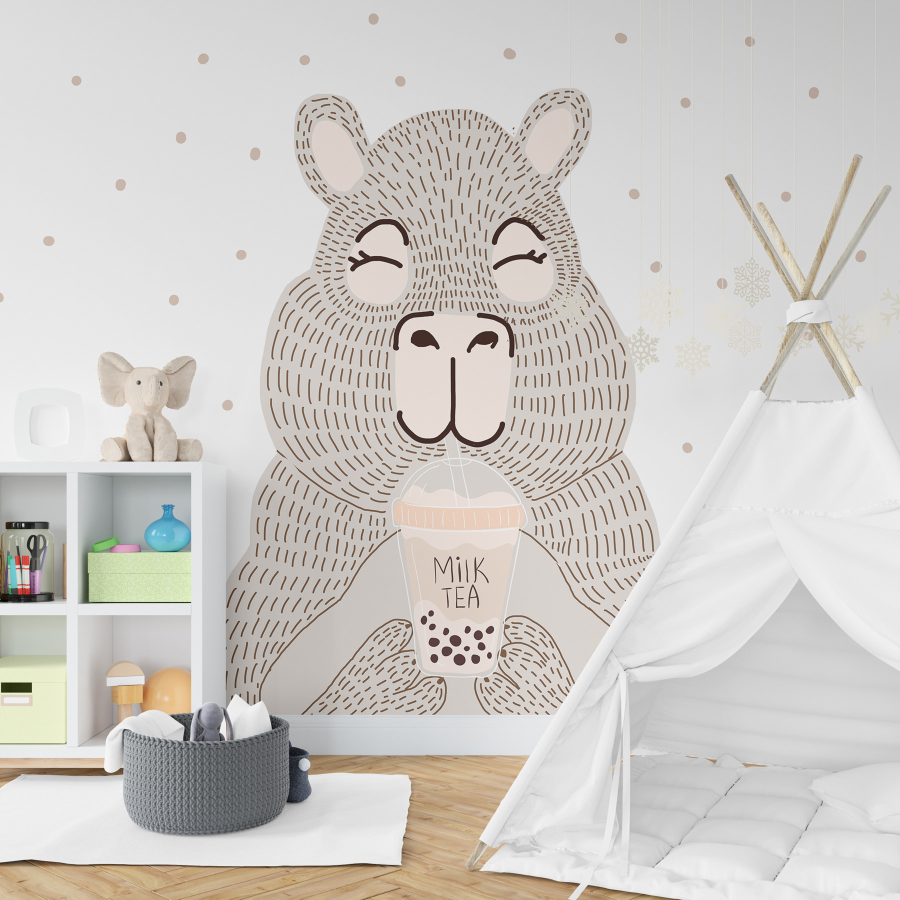 ¿Quién podría resistirse a un oso al que le gustan las burbujas de té? Este mural de dibujos animados aporta un toque de fantasía y calidez a cualquier habitación. Imagínatelo: entras después de un largo día y te recibe un encantador oso, sorbiendo un té de burbujas con una sonrisa serena. Es imposible no sentirse relajado al instante. Perfecto para dar un toque juguetón a dormitorios o cafeterías extravagantes. Tanto si eres un fanático del té de burbujas como si simplemente te encanta un buen amigo oso, este mural añade un ambiente único y acogedor a tu espacio. ¿Quién iba a decir que un oso podría ser un compañero de piso tan guay?