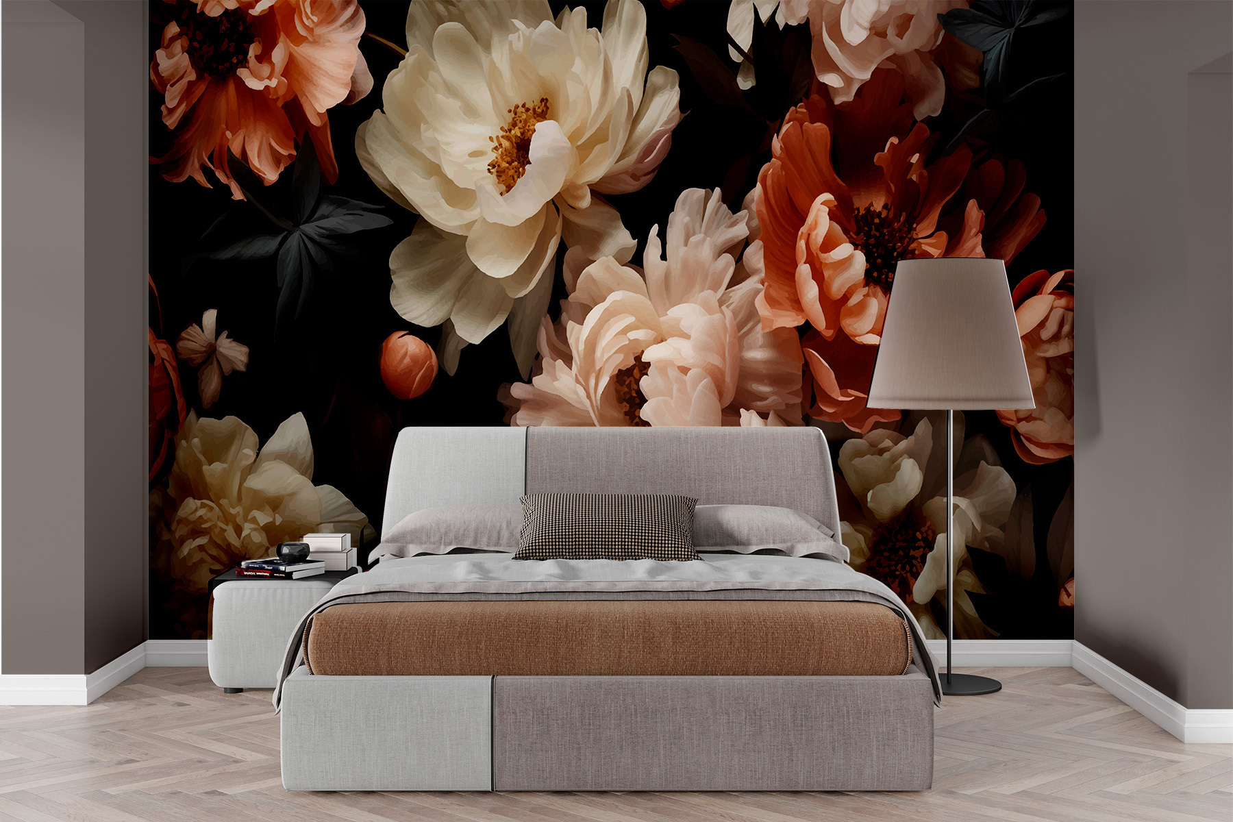 Imagine entrar en una habitación y ser recibido por la elegante danza de las flores sobre un fondo rico y oscuro. Este mural trae el encanto de un jardín de medianoche al interior, donde las peonías y otras flores se mecen sutilmente, como atrapadas por una suave brisa. Es un susurro del dramatismo de la naturaleza, perfecto para crear un rincón acogedor o transformar una pared aburrida en una obra de arte. Los profundos contrastes dan una sensación de confort e intriga, como descubrir un jardín secreto en el crepúsculo, despertando una sensación de aventura y paz a la vez.