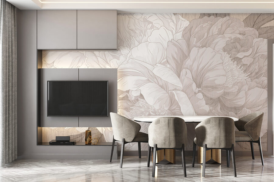 Imagínese esto: está en el salón, con una taza de té en la mano, y un llamativo mural de peonías adorna la pared. Es como si las propias flores susurraran elegancia a la habitación. El boceto monocromático le da ese aire sofisticado, casi como si estuvieras en una galería de arte elegante o incluso en un jardín encantado. Perfecto para cualquiera que adore un toque del encanto de la naturaleza sin gritarlo. Además, transmite calma y paz, aportando un poco de tranquilidad a los días ajetreados. Ideal, ¿verdad?