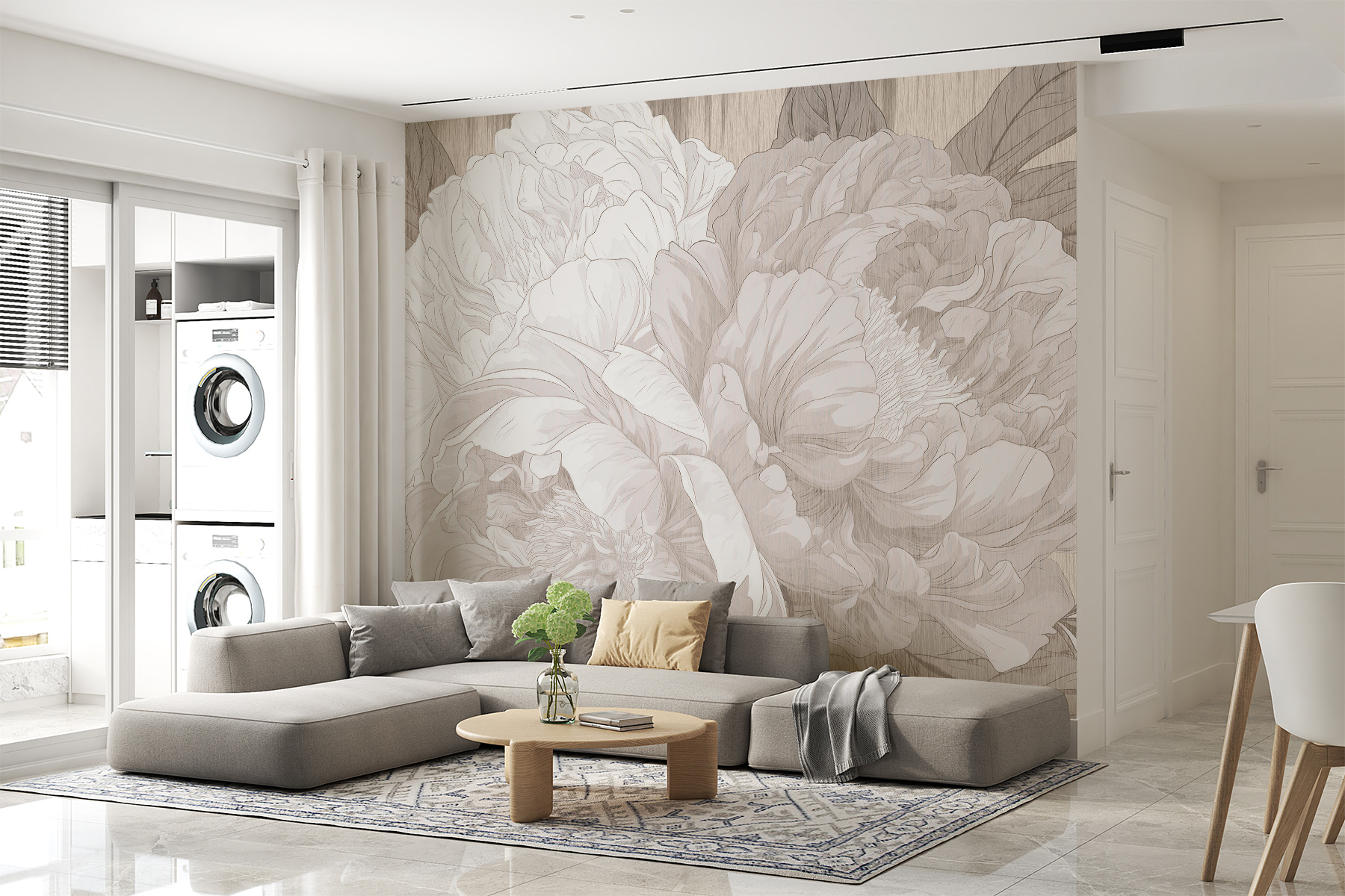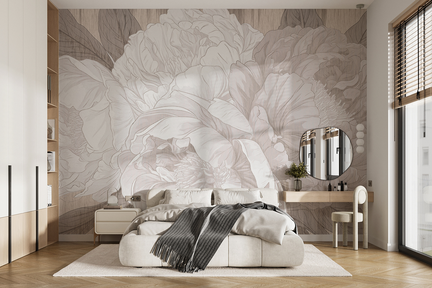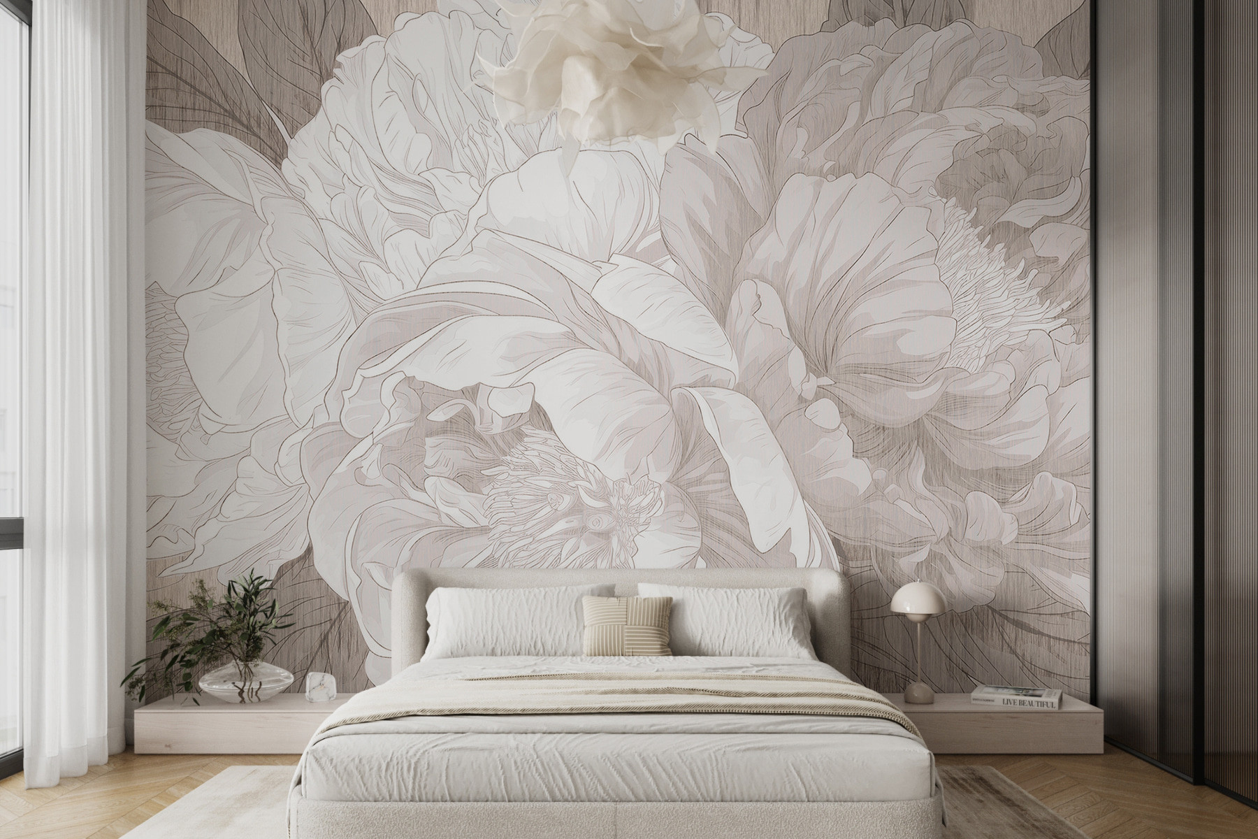 Imagínese esto: está en el salón, con una taza de té en la mano, y un llamativo mural de peonías adorna la pared. Es como si las propias flores susurraran elegancia a la habitación. El boceto monocromático le da ese aire sofisticado, casi como si estuvieras en una galería de arte elegante o incluso en un jardín encantado. Perfecto para cualquiera que adore un toque del encanto de la naturaleza sin gritarlo. Además, transmite calma y paz, aportando un poco de tranquilidad a los días ajetreados. Ideal, ¿verdad?