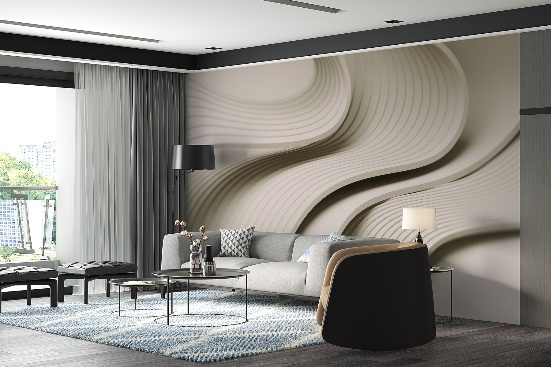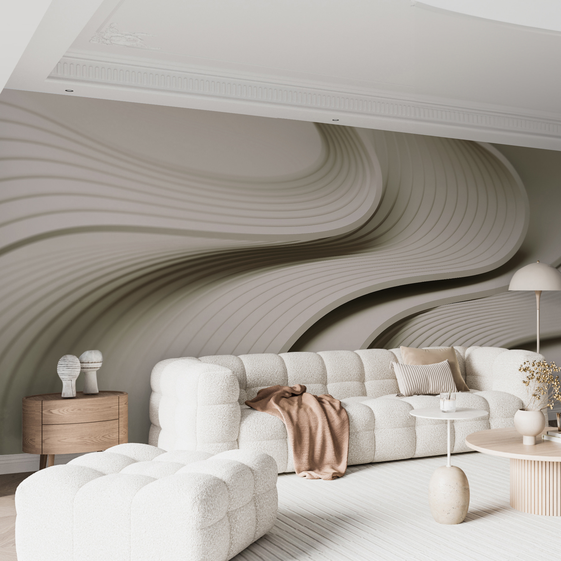Transforme su espacio con “Líneas onduladas blancas y grises”, un mural que es como una suave ondulación en un día tranquilo. Imagínese tomando su café matutino mientras las relajantes curvas juegan con la luz, invitando a su mente a vagar. Perfecto para cualquiera que adore un ambiente limpio y moderno pero que anhele un poco de estilo. Estas ondas son como un baile en la pared: elegantes y discretas, pero llenas de vida. Es donde la sencillez se une a la intriga, y a veces es justo el toque que necesitas, ¿verdad? Deje que sus paredes le susurren una historia.