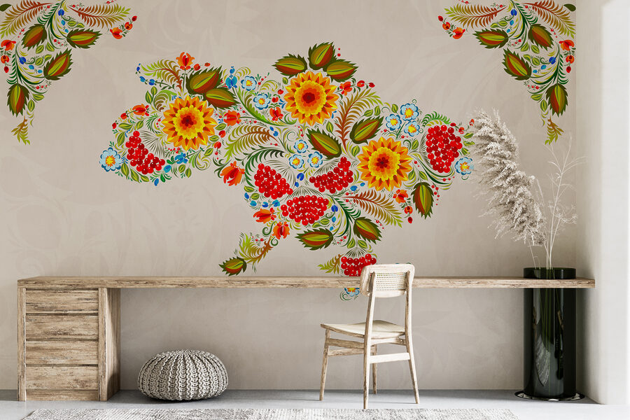 Hola, entusiasta de la decoración. Te presentamos este impresionante mural de pared: es un mapa de Ucrania, pero sustituye las aburridas líneas por atrevidas y florecientes flores. Imagina tu habitación llena de color, como si acabara de entrar un jardín. Esos amarillos y rojos intensos, mezclados con verdes vibrantes, ¡son pura alegría! Es como tener una obra de arte que susurra historias de tradición y cultura. ¿A quién no le gustaría empezar el día con la sensación de estar entrando en una celebración? Perfecto para cualquiera que desee un poco más de belleza y carácter en su espacio.
