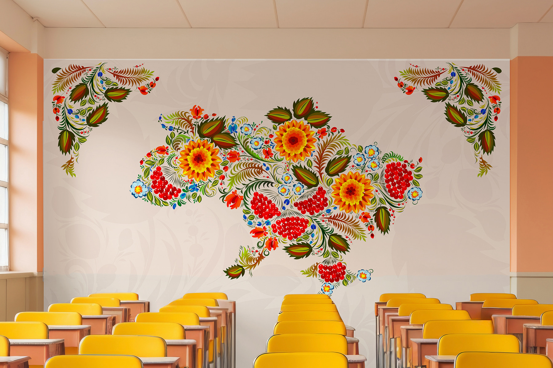 Hola, entusiasta de la decoración. Te presentamos este impresionante mural de pared: es un mapa de Ucrania, pero sustituye las aburridas líneas por atrevidas y florecientes flores. Imagina tu habitación llena de color, como si acabara de entrar un jardín. Esos amarillos y rojos intensos, mezclados con verdes vibrantes, ¡son pura alegría! Es como tener una obra de arte que susurra historias de tradición y cultura. ¿A quién no le gustaría empezar el día con la sensación de estar entrando en una celebración? Perfecto para cualquiera que desee un poco más de belleza y carácter en su espacio.