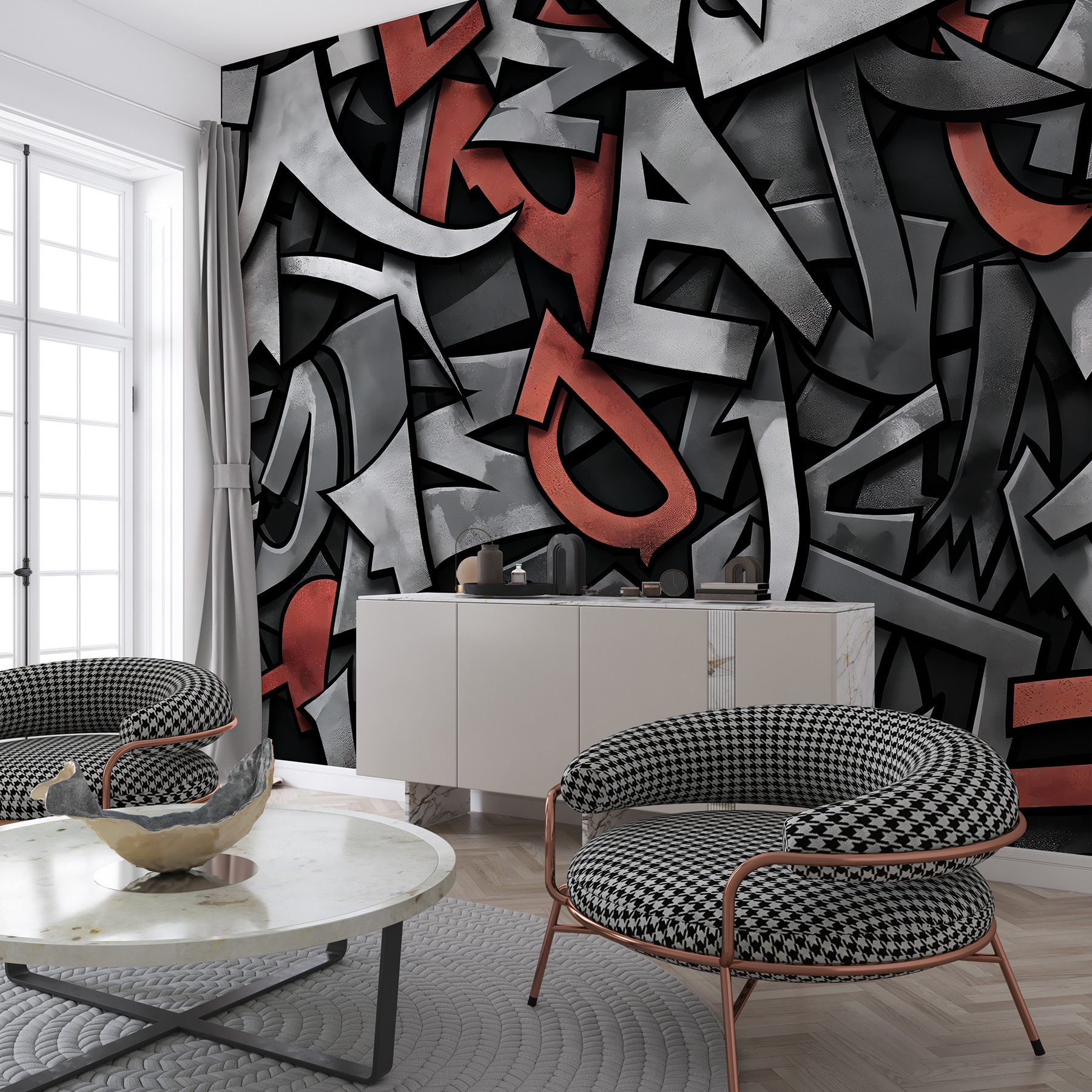 Imagínese entrar en una habitación y ser golpeado por una ola de creatividad: eso es lo que obtendrá con este mural de pared “Logo rojo y negro”. Es como si el arte moderno acabara de explotar en su pared, con rojos atrevidos y negros profundos bailando en un mar de formas y ritmos. Perfecto para alguien a quien le guste un poco de vanguardia en su decoración. Imagínate recibiendo a tus amigos y viendo cómo sus ojos se iluminan de admiración (y quizá un poco de envidia) cuando vean esta atrevida pieza. No es sólo decoración de pared; es un tema de conversación instantáneo. ¿Y lo mejor? Encaja en casi todos los ambientes: salones contemporáneos, despachos a la última o incluso en el rincón más chic de una cafetería. Además, ¿a quién no le gustaría despertarse cada día con un toque de inspiración artística? Este mural convierte las paredes ordinarias en un lienzo de pura imaginación y estilo. Pum: ¡una habitación transformada!