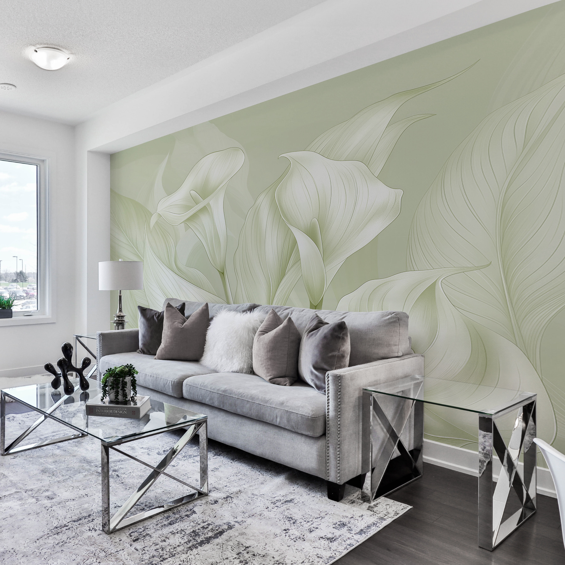 ¿Te gusta la elegancia? Este “Mural Elegantes Calas en tonos suaves” puede ser la mejora que tu espacio necesita. Imagínate descansando en una habitación adornada con estas graciosas calas, cada flor es un delicado susurro en tonos verdes y blancos. Perfectas para cuando quieras un ambiente sereno y botánico sin pasarte.