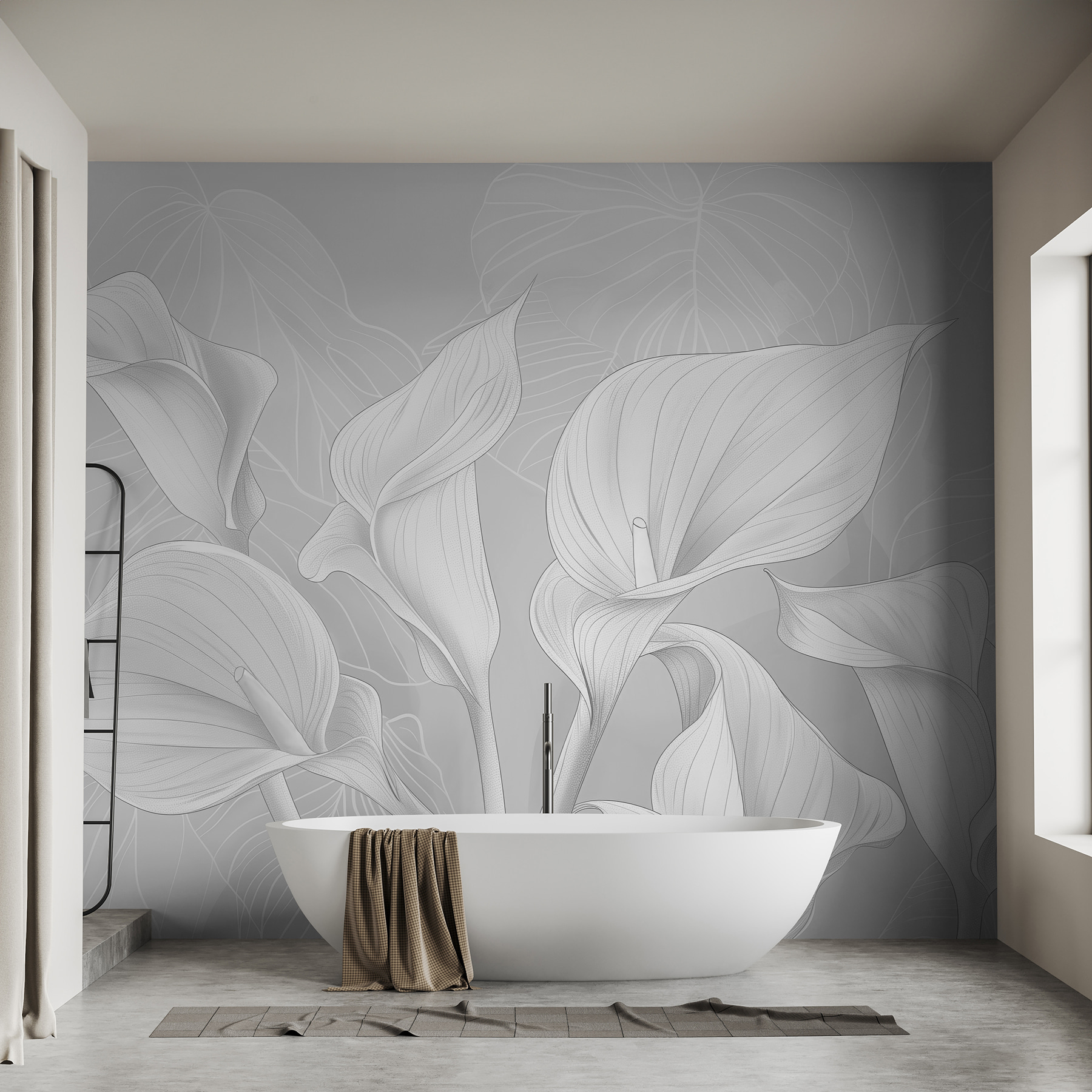 Echa un vistazo a este impresionante “Mural Elegantes lirios sobre fondo monocromo”. En serio, tiene un aire tranquilo y sofisticado, como si entraras en un jardín zen minimalista. La paleta monocromática hace que estos lirios destaquen de la forma más discreta: son elegantes sin gritarlo.