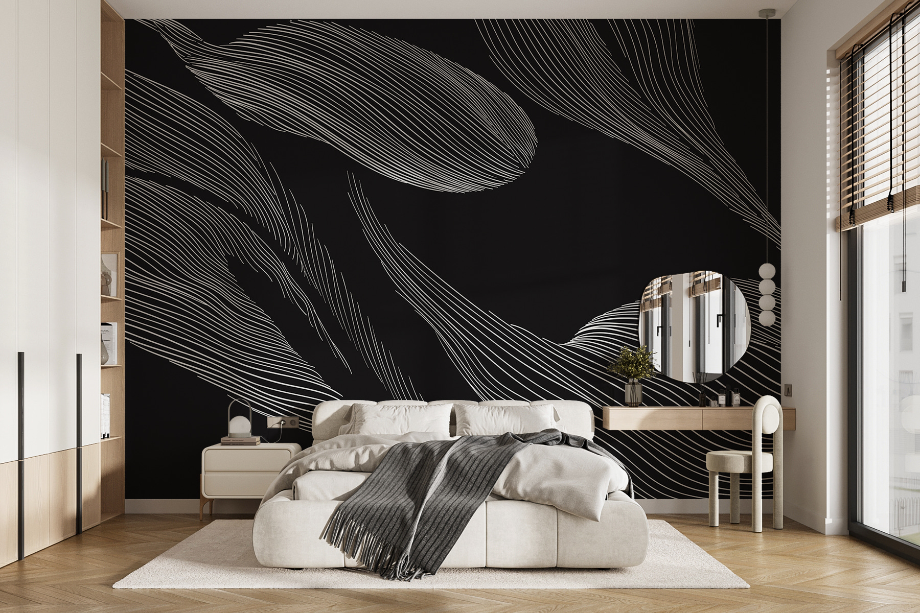 Transforma tu espacio con este impresionante mural de hojas en blanco y negro que baila por la pared. Es como llevar la naturaleza al interior, pero sin bichos, ¡puntos extra! Las líneas fluidas ofrecen una sensación de movimiento, recordando a una suave brisa susurrando a través de las hojas. Perfecto para un rincón de lectura acogedor o un salón moderno, seguro que suscita conversaciones e incluso un poco de ensoñación. Imagínese acurrucado con una taza de té, rodeado de las relajantes vibraciones de esta obra de arte. ¿Quién iba a decir que un mural podía convertir una pared en todo un estado de ánimo?