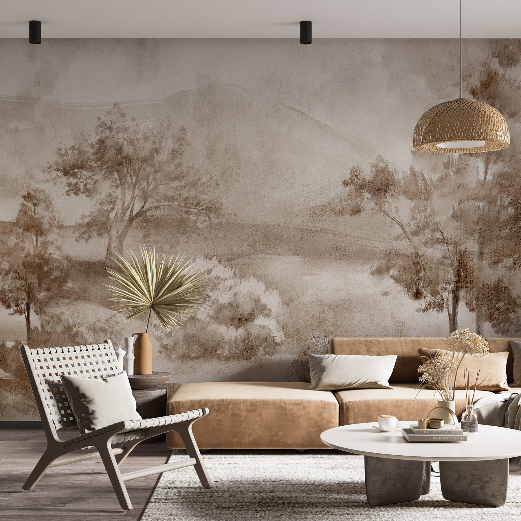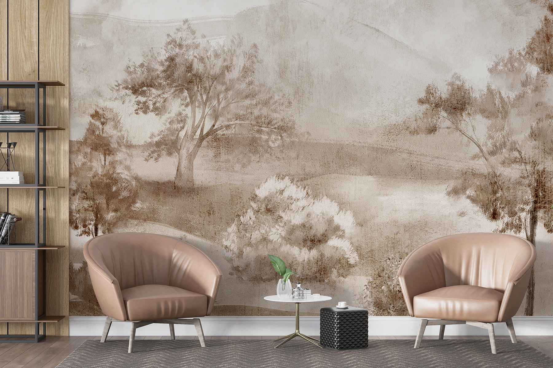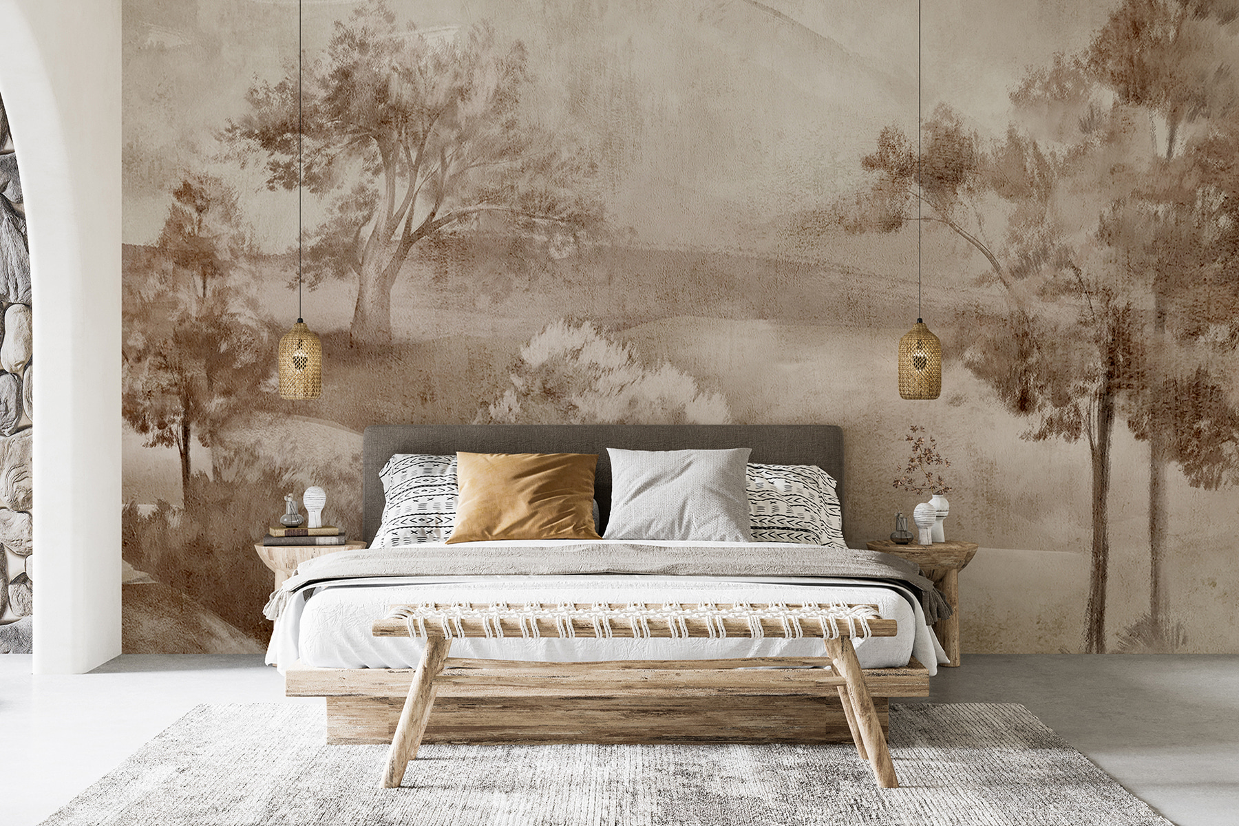 Imagina que entras en tu habitación después de un largo día y ves esta vista terrosa y tranquila: te hace respirar hondo al instante, ¿verdad? Tiene ese aire tranquilo y boscoso que te hace querer acurrucarte con un buen libro o charlar con un amigo tomando un café.