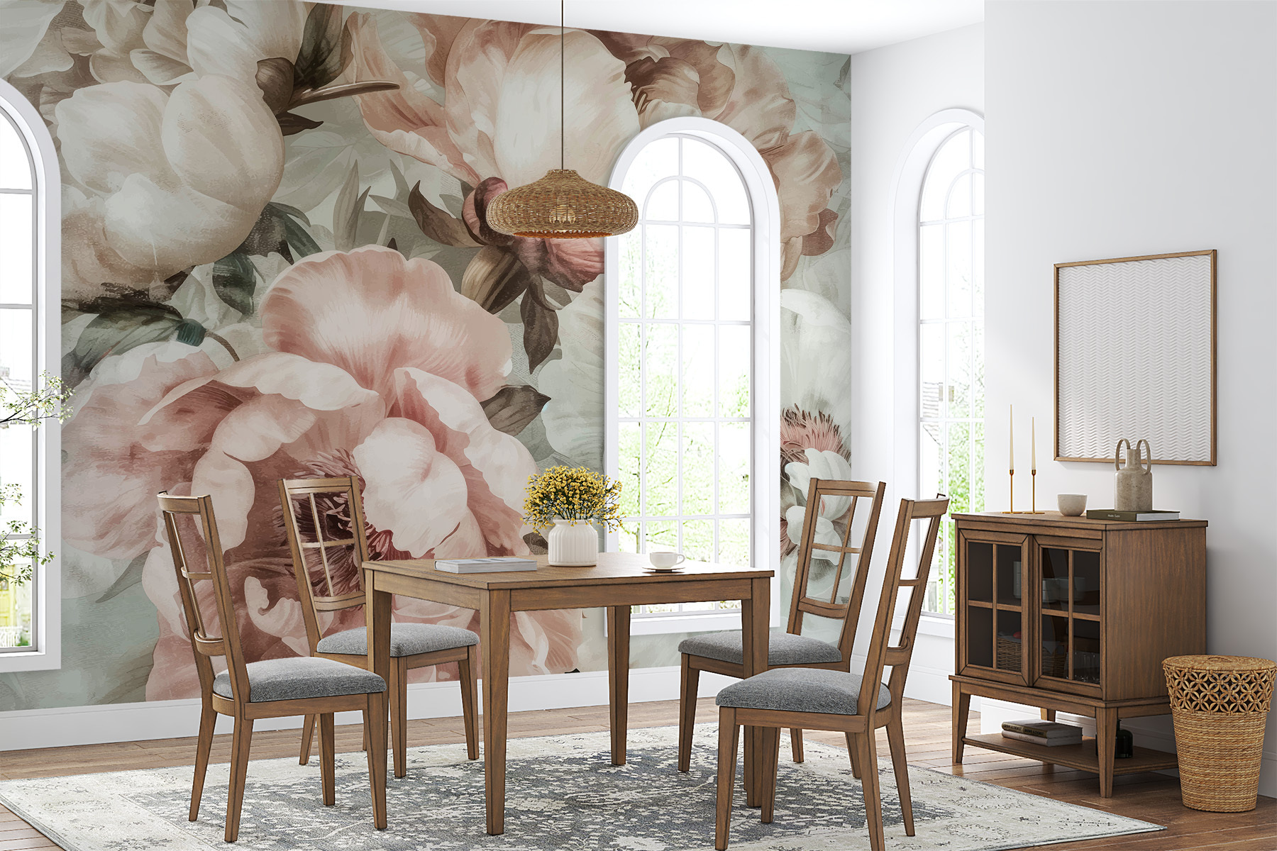 Absolutamente impresionante, ¿verdad? Este “Murales de pared w01291” de las colecciones “Murales de pared de flores 3D” y “Murales de pared de flores monstruosas” lleva un jardín directamente a su habitación. Imagínese que se despierta con estas flores: es como un toque de fresca tranquilidad. Los suaves tonos pastel y las sombras tan suaves desprenden un ambiente de ensueño, casi caprichoso. Perfecto para un rincón de lectura acogedor o un dormitorio sereno. Y, sinceramente, ¿a quién no le gustan las peonías que nunca se marchitan? Crean un ambiente dulce y sereno que se siente como un abrazo: ¡tomar una taza de té y relajarse nunca ha tenido tan buena pinta!