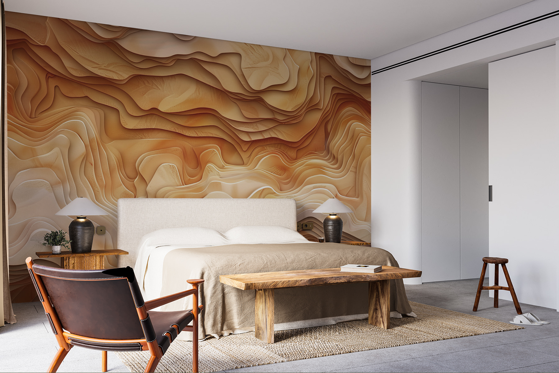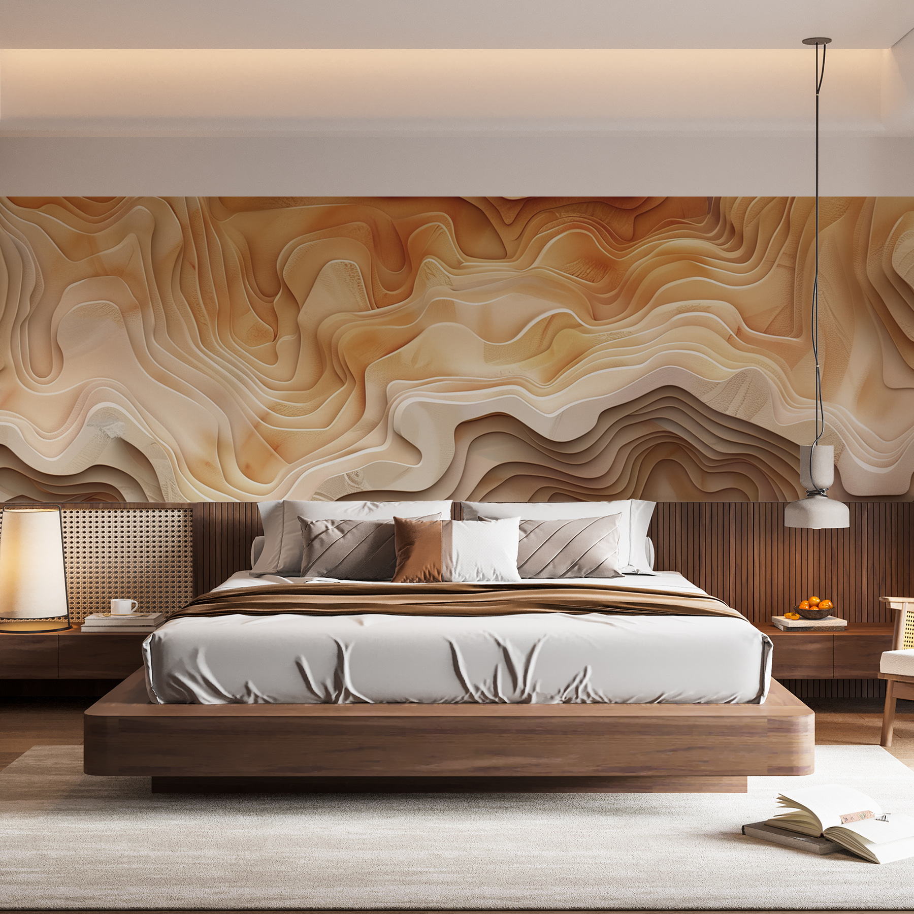 Transforme sus paredes con la belleza de las capas de la Tierra, plasmada en este mural de ondas abstractas en tonos cálidos y terrosos. Imagínese entrar en un ambiente sereno, natural y acogedor, perfecto para un acogedor rincón de lectura o un animado salón. Este diseño añade profundidad sin abrumar los sentidos. Es como llevar un trozo de naturaleza al interior. Sus amigos lo admirarán e incluso le preguntarán si se ha convertido en diseñador de interiores en secreto. ¿Por qué no dejar que tu espacio cuente una historia? Es hora de decir adiós a las paredes aburridas y dar la bienvenida a un ambiente que parezca hecho a tu medida.