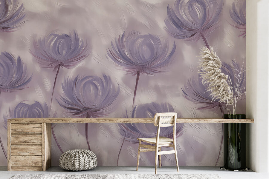 Echa un vistazo a este impresionante mural de pared, acertadamente llamado “Murales de pared w01375”. Es como un sueño hecho realidad, ¿verdad? Perfecto para cualquiera que ame la decoración única con un toque de naturaleza y un toque de magia de acuarela. Imagínatelo: flores suaves y caprichosas en delicados tonos morados, meciéndose casi como si se susurraran secretos unas a otras.
