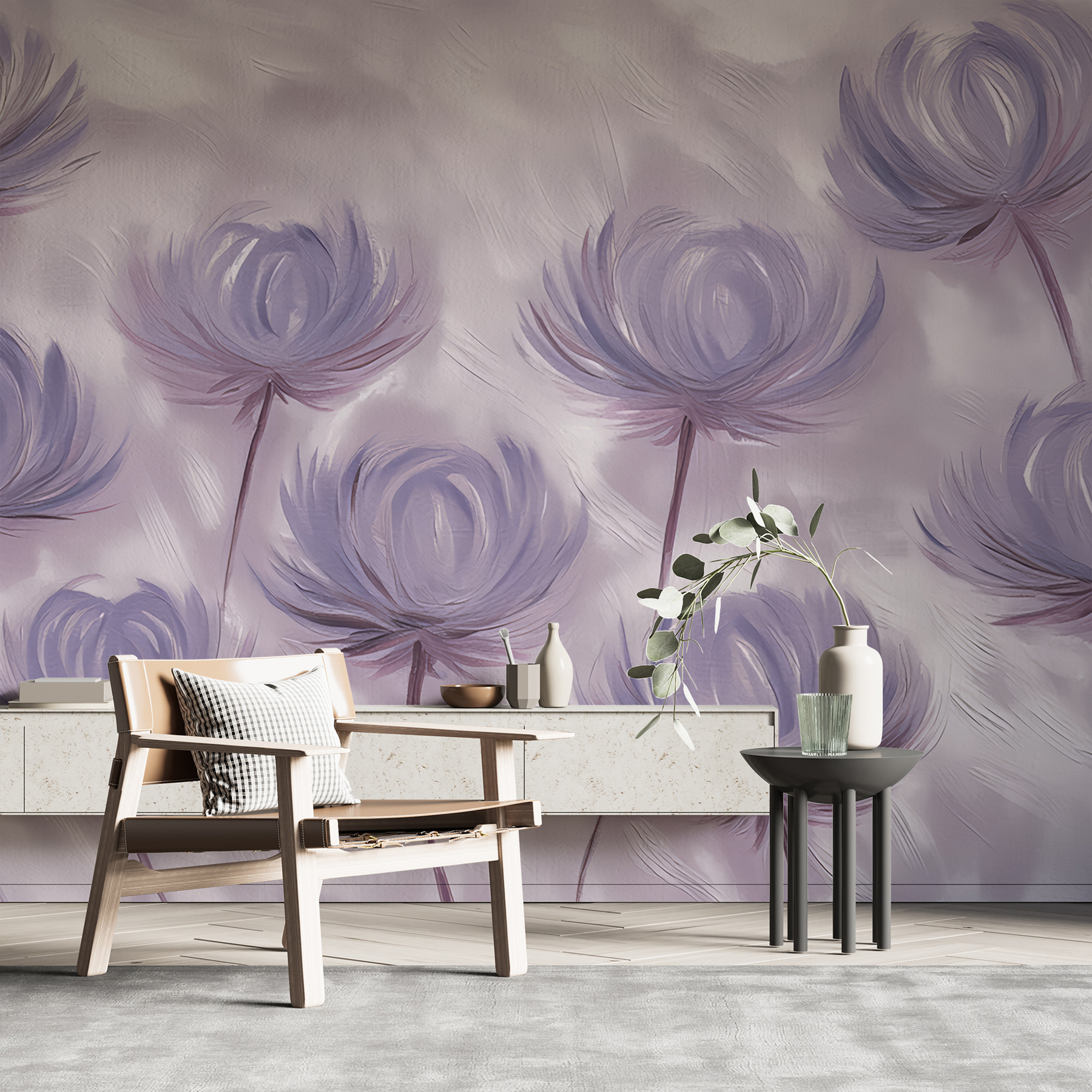 Echa un vistazo a este impresionante mural de pared, acertadamente llamado “Murales de pared w01375”. Es como un sueño hecho realidad, ¿verdad? Perfecto para cualquiera que ame la decoración única con un toque de naturaleza y un toque de magia de acuarela. Imagínatelo: flores suaves y caprichosas en delicados tonos morados, meciéndose casi como si se susurraran secretos unas a otras.