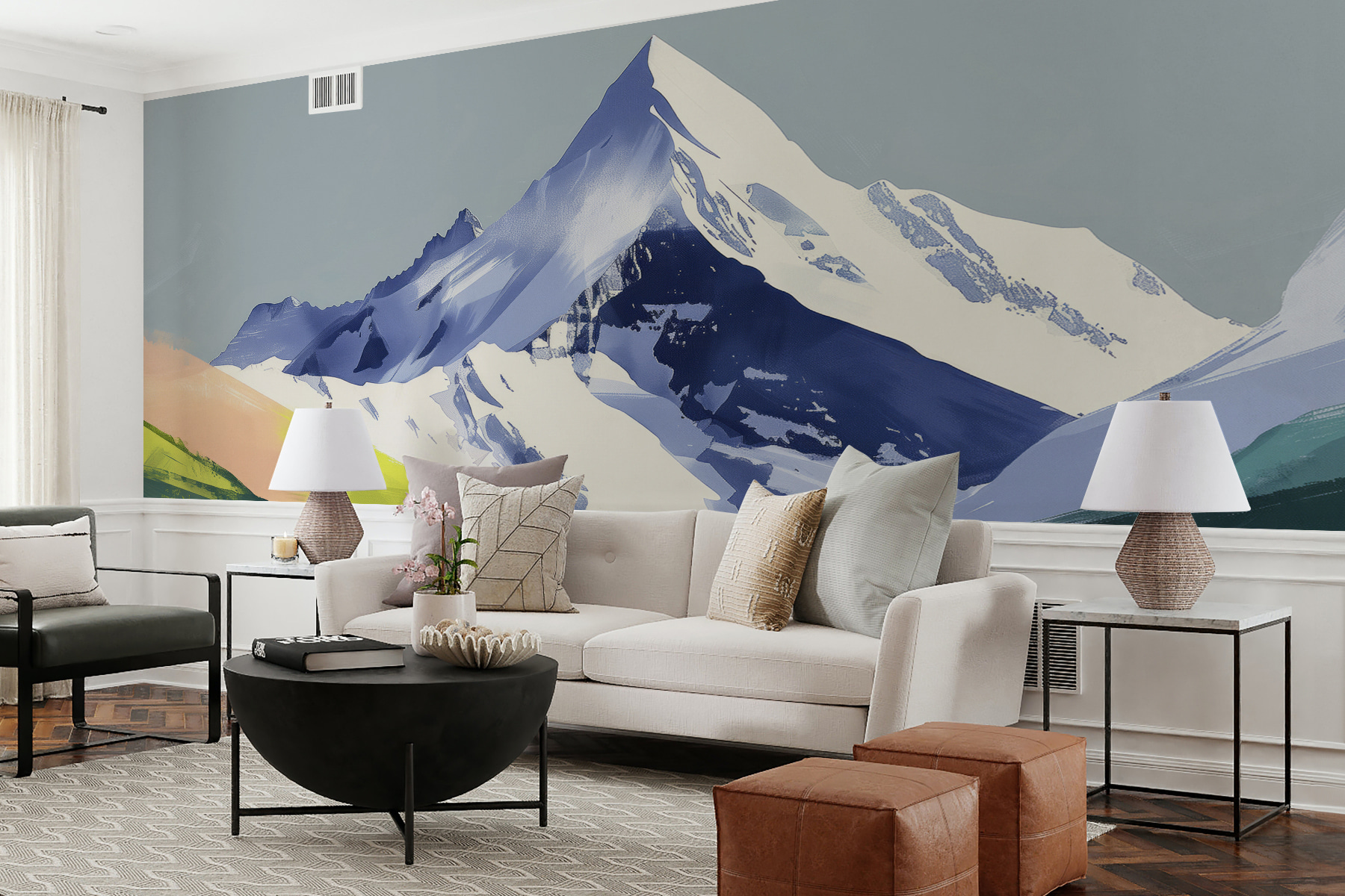Transforme su espacio en un sereno refugio de montaña con este impresionante mural de pared. Imagínese despertarse con la vista de picos nevados y exuberantes colinas verdes, es como traer un soplo de aire fresco alpino directamente a su casa. Los colores son atrevidos pero relajantes, perfectos para añadir un toque de felicidad inspirada en la naturaleza a cualquier habitación. Este mural no es sólo una decoración; es una invitación a la evasión. Ya sea tomando un café o acurrucándose con un buen libro, le hará sentir como si estuviera en una acogedora escapada a la montaña. Perfecto para soñar despierto, ¿verdad?