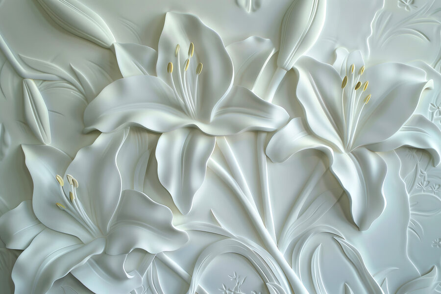Imagine que sus paredes florecen con serenidad y encanto: “Murales de pared w01434v1” es justo ese ambiente. Este mural es como tener un jardín en casa, pero sin tener que regarlo (¡ni los bichos!). Los delicados detalles de los lirios resaltan en 3D, haciendo que su espacio parezca muy acogedor y vivo.