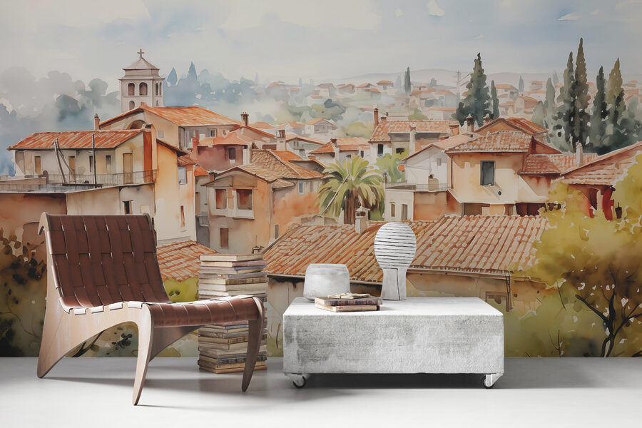 Imagine despertarse cada mañana con la encantadora sencillez de los tejados de terracota acariciados por el sol y la exuberante vegetación… justo en su salón. “Fotomurales w01440” es como una postal de su escapada mediterránea favorita, perfecta para añadir un toque de calidez y nostalgia. Este mural lleva la naturaleza al interior y hace que cualquier habitación resulte acogedora. El efecto de acuarela es simplemente de ensueño, transmitiendo esas vibraciones artísticas sin esfuerzo. Los amigos que pasen por aquí sentirán al instante que han entrado en un pueblo de cuento, con ese encantador ambiente del viejo mundo. Ideal para cualquiera a quien le guste combinar el encanto rústico con un toque de elegancia.