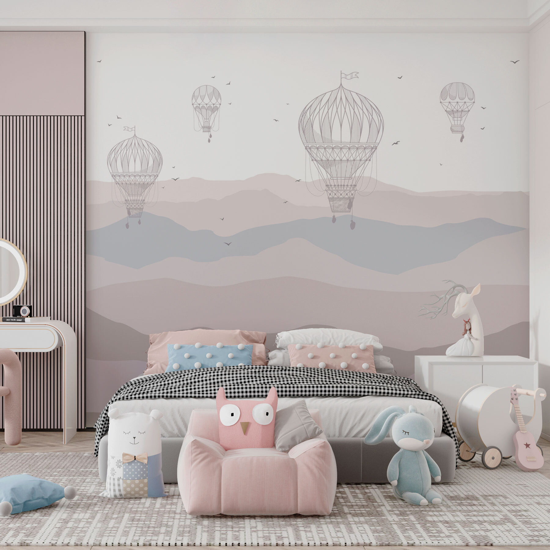 Los suaves degradados de las montañas que se desvanecen en la distancia añaden un telón de fondo relajante a la hora del cuento o a cualquier momento de reflexión tranquila. Trae un poco del aire libre al interior, ¡sin preocuparse por el tiempo! Uno casi esperaría oír el suave susurro de los globos que pasan a la deriva y los débiles gorjeos de los pájaros que salpican el horizonte… Encantador, ¿verdad?