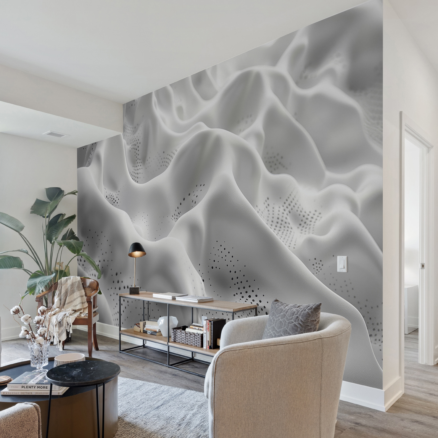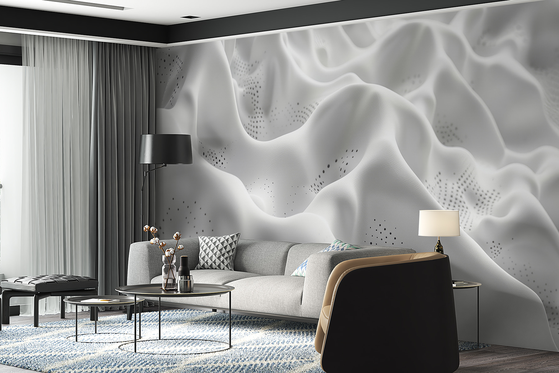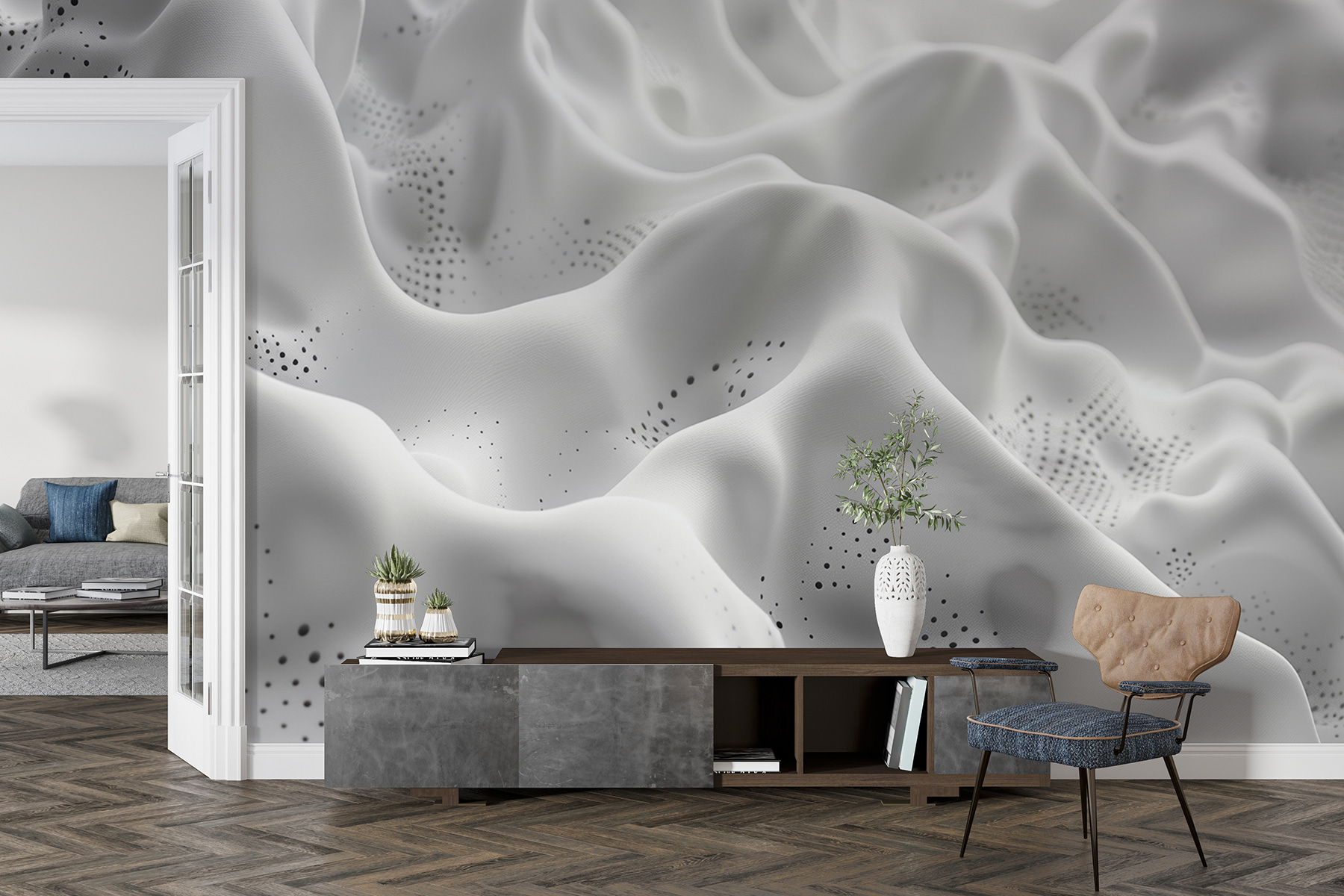 Imagínese esto: sus invitados entran y quedan hipnotizados al instante por la fluidez y la textura, casi como si la pared estuviera viva. Tiene ese ritmo hipnotizador, esos puntos sutiles que crean ilusiones de olas y movimiento. Es como sumergirse en un paisaje sereno y futurista.