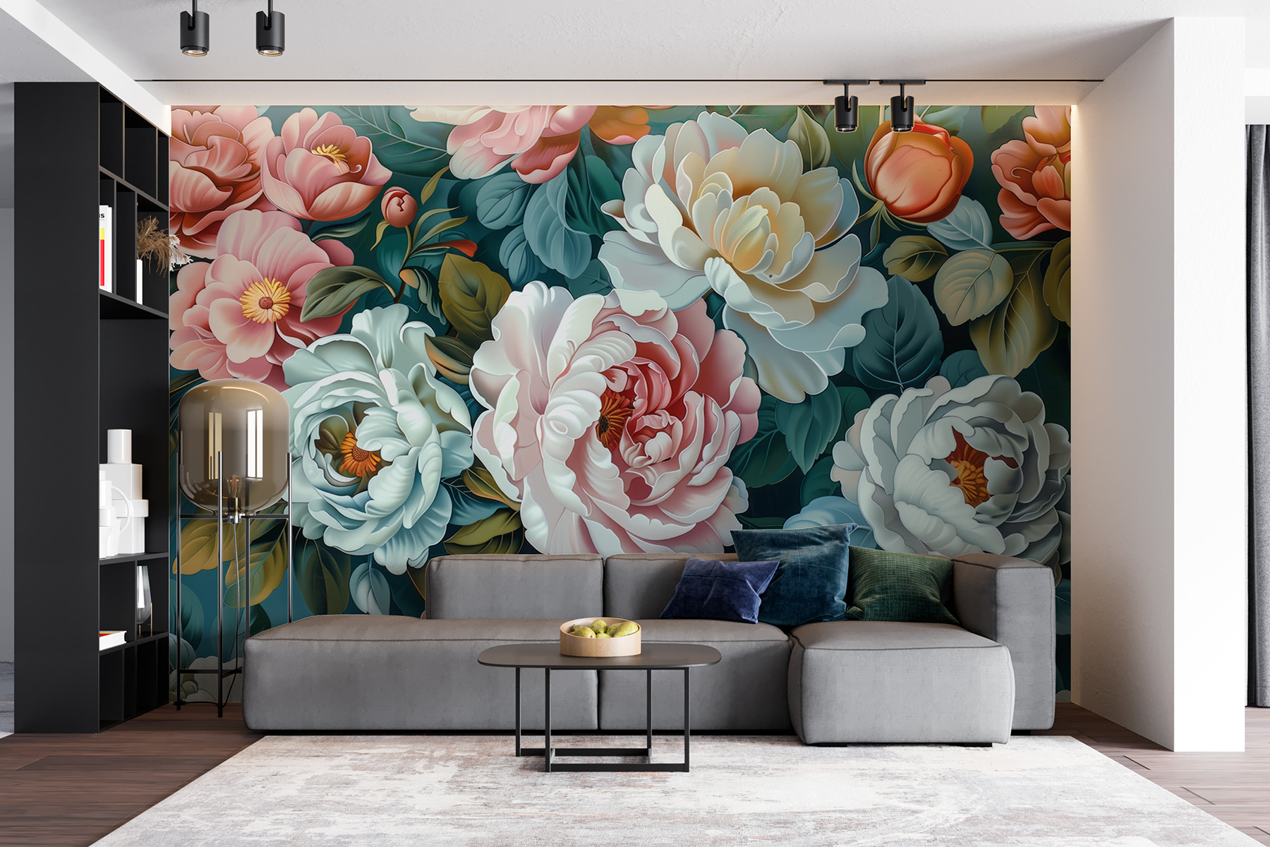 Un mural así transforma cualquier espacio. Podría ser tu vía de escape personal, convirtiendo una habitación monótona en un jardín lleno de vida. Imagínese los cafés matutinos con estas flores como telón de fondo: es suficiente para alegrar cualquier día. La mezcla de colores intensos y ricos y los intrincados detalles hacen que resalte.
