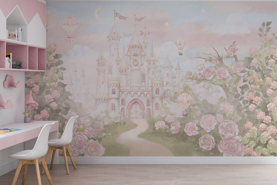 Fotomurales Castillo con flores y globos aerostáticos (SKU: w01524)