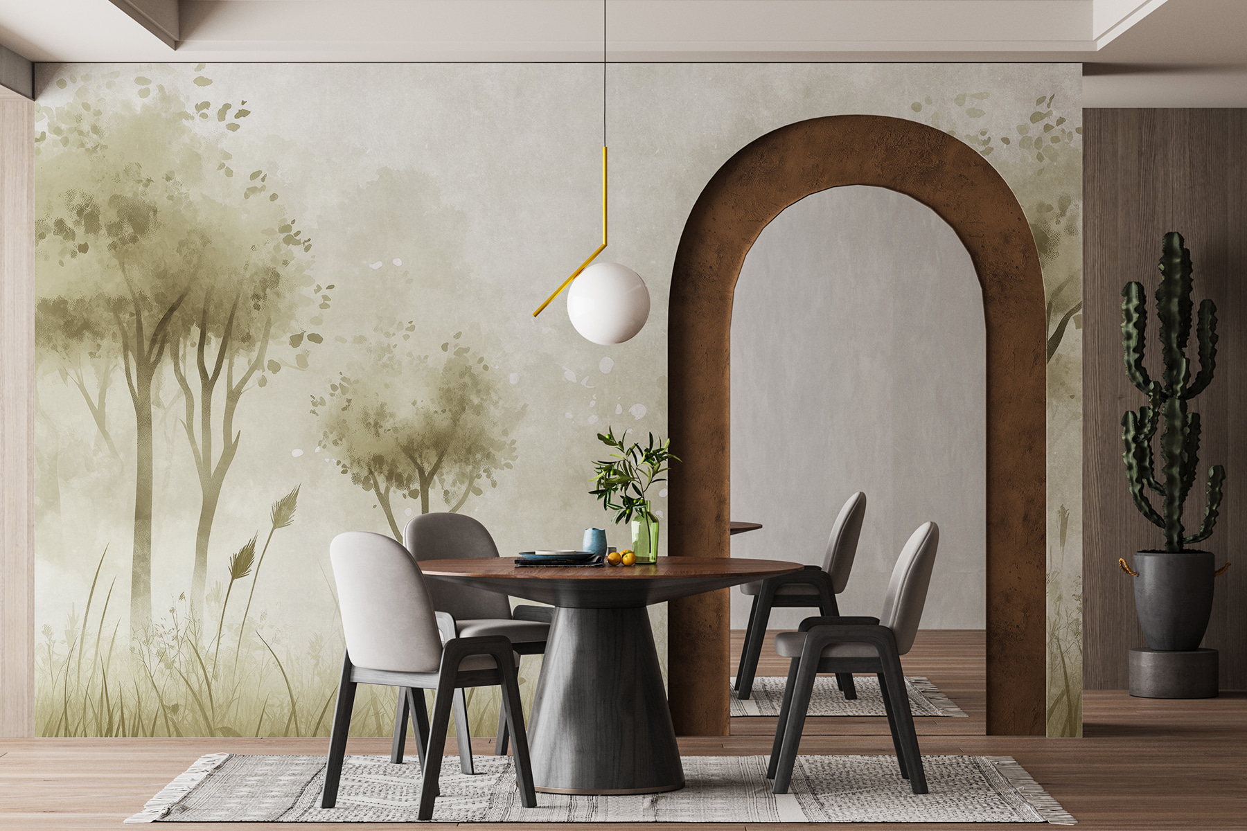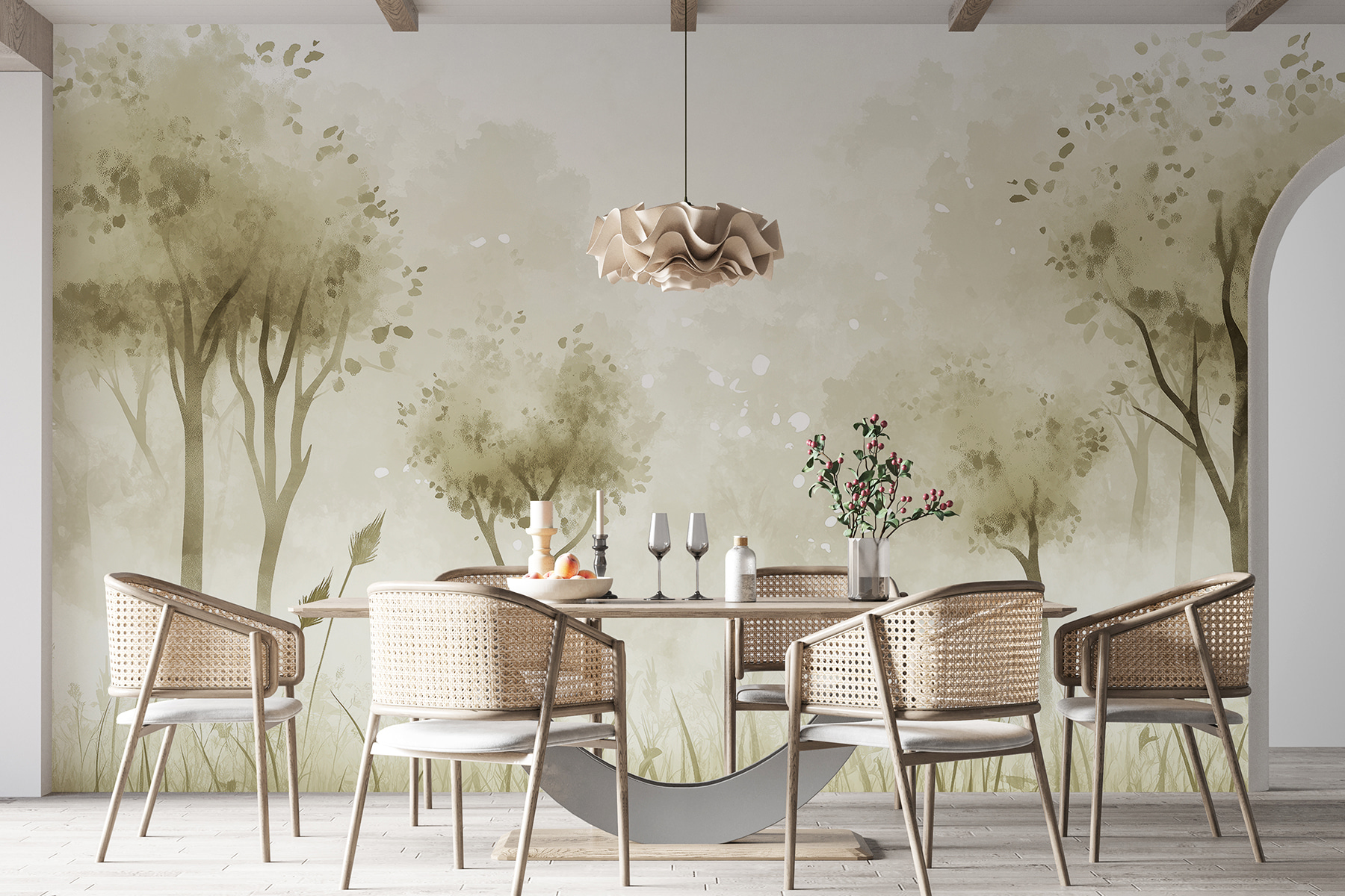 Imagínese despertarse con esta serena escena cada mañana. El mural “Paisaje brumoso con árboles y hierba” es como tener su propia escapada a la naturaleza en casa. Perfecto para los amantes de la paz y la calma de un bosque brumoso. Tiene ese aire suave y soñador, como si la naturaleza hubiera decidido pintar su propia obra maestra. Imagínese tomando su café matutino, perdiéndose en la suave bruma, mientras los árboles parecen contar historias del bosque. No es sólo un mural, es tu vía de escape personal del ajetreo habitual. Ideal para cualquiera que encuentre la belleza en la sencillez y un toque de misterio.