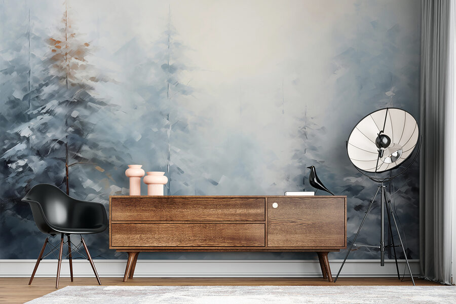 Imagínese entrar en una habitación y sentir que ha sido transportado a un sereno paraíso invernal. Este mural de pared, con su representación de ensueño de árboles cubiertos de nieve, trae ese ambiente mágico del bosque directamente a su casa. Imagínese tomando un cacao caliente mientras lo contempla, sintiendo un suave frío en el aire, aunque sea pleno verano. Perfecto para los amantes de la naturaleza y los que necesitan un poco de tranquilidad en sus caóticas vidas. Es como un abrazo de la naturaleza, pero sin congelación. Acogedor, fresco y maravillosamente calmante.
