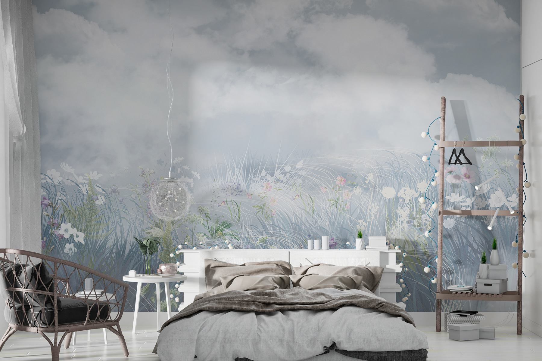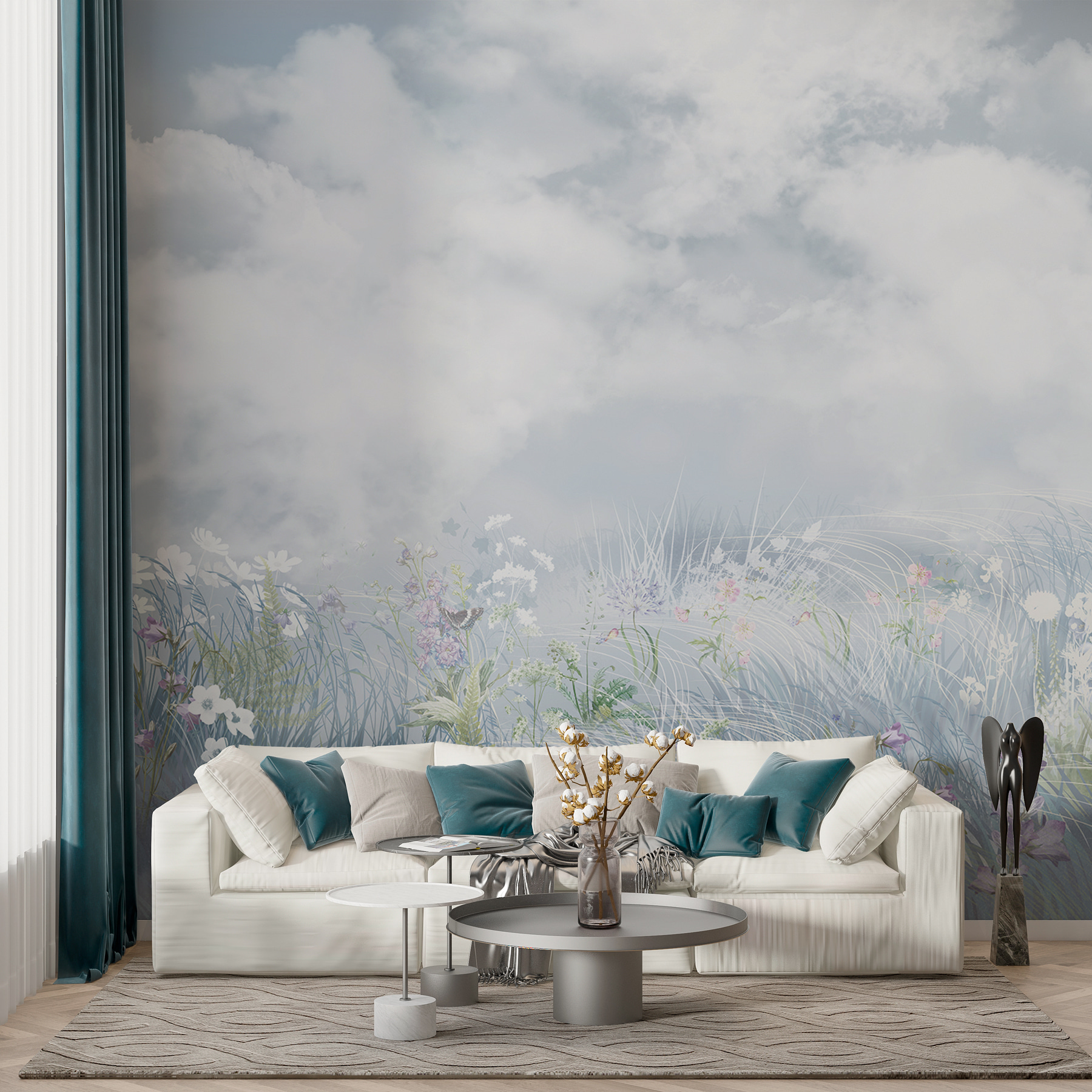 Imagina despertarte con un campo de flores todos los días, sin salir de tu cómoda cama. Este mural tiene nubes tan esponjosas que prácticamente se desprenden de la pared, y flores silvestres que parecen florecer ante tus ojos. Es como un sueño de acuarela en la pared. Perfecto para los que desean echarse una siesta en un prado (sin hormigas). Tiene una forma mágica de abrir una habitación, haciéndola sentir tranquila y ventilada. Una escapada perfecta. Té en mano, te olvidarás de que estás en casa. Es maravilloso, ¿verdad?