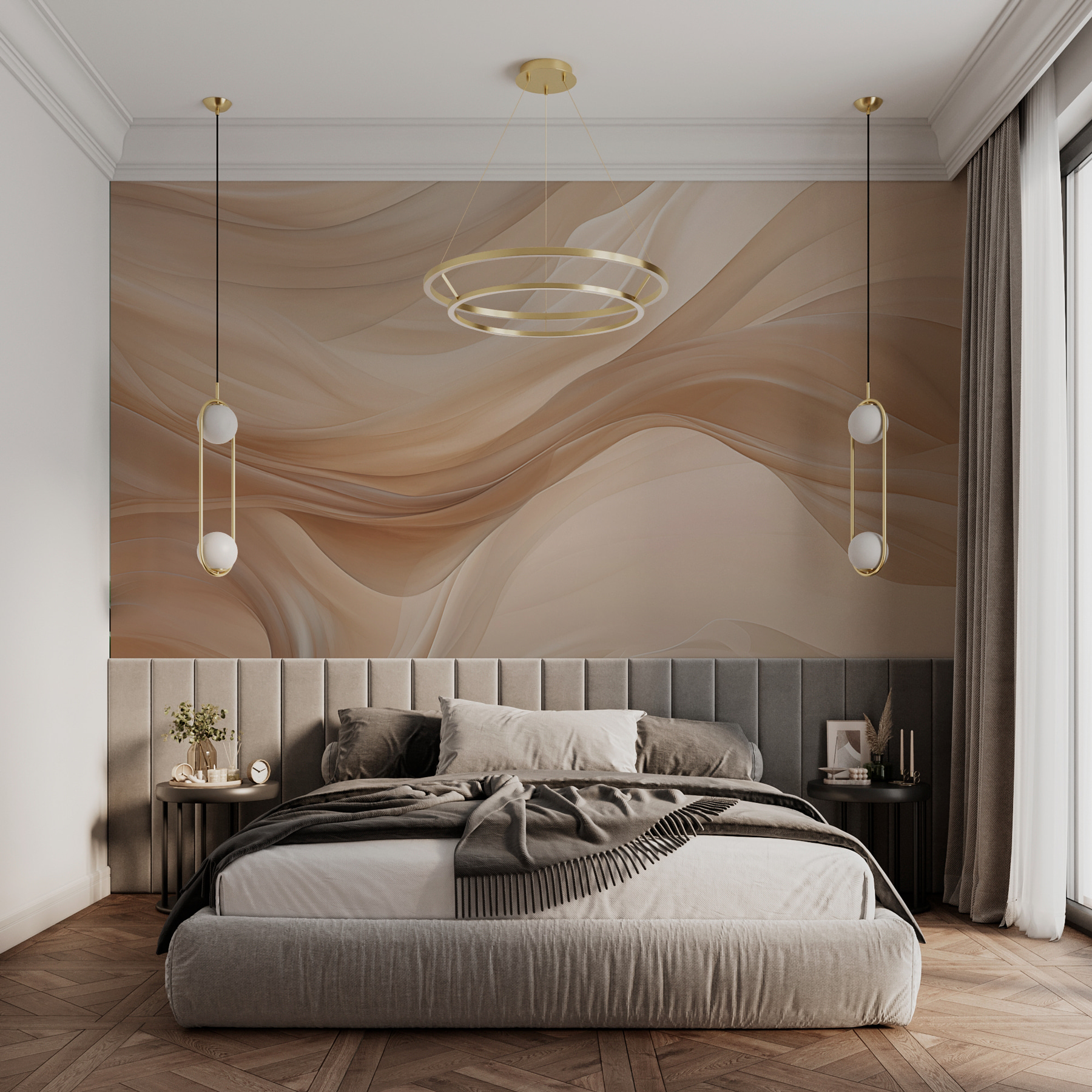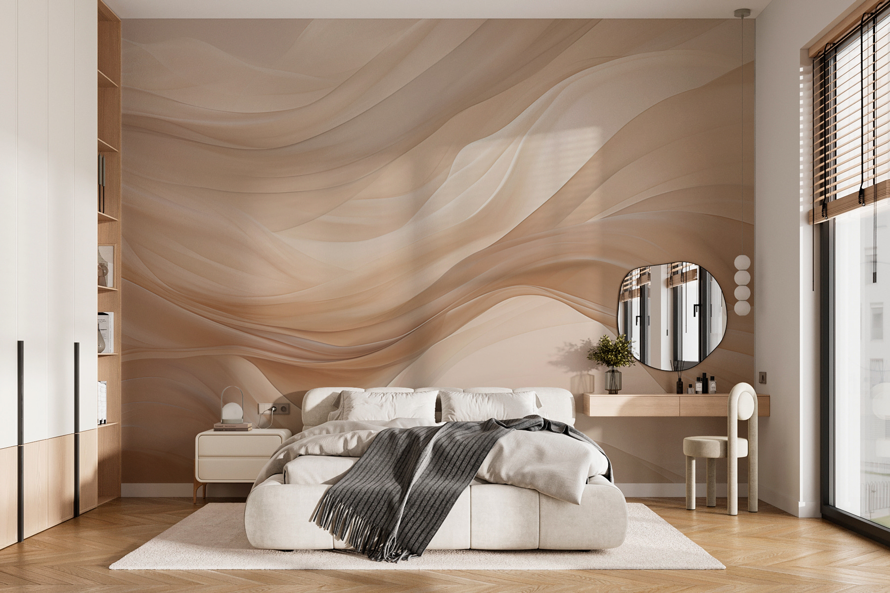 Imagínese entrar en una habitación que parezca un abrazo acogedor. El mural “Creamy Waves of Silky Texture” lo consigue. Patrones suaves y fluidos en tonos cálidos crean un ambiente relajante, haciendo que cualquier espacio se sienta abierto y aireado – piense en vibraciones playeras sin arena. Es perfecto para un salón o un despacho sereno. Imagínate acurrucado con un libro, con los suaves remolinos a tu alrededor que te hacen sentir que el tiempo se ralentiza. Sus amigos le preguntarán de dónde lo ha sacado: es el tipo de mueble que da que hablar. Una divertida mezcla de arte y estilo, este mural añade un carácter único que resalta la personalidad de su espacio.