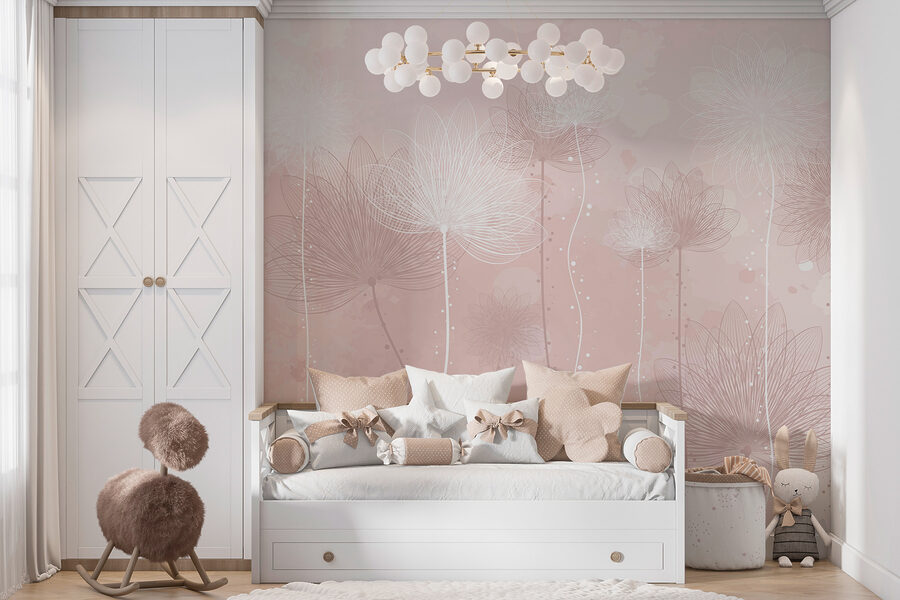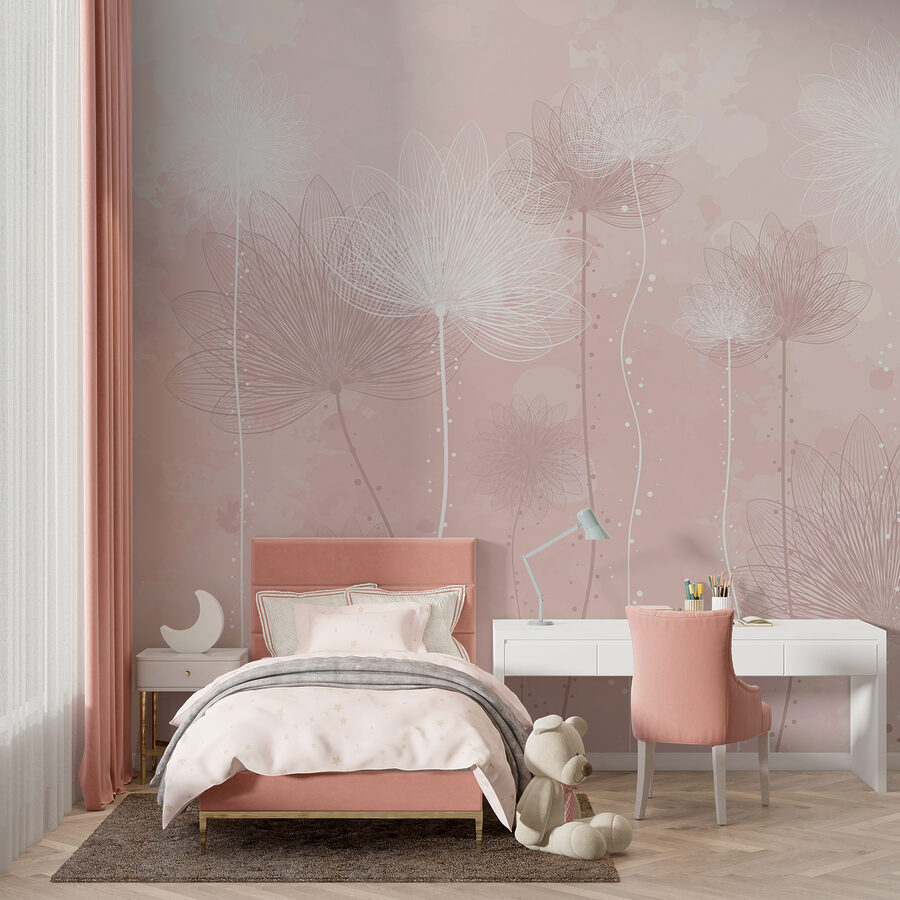Imagínese que entra en una habitación donde la elegancia hace piruetas en las paredes: “Elegantes flores bailando en rubor”. Este mural es como un suave susurro de primavera en acuarela, con dientes de león listos para alzar el vuelo. Es una ensoñación para los amantes de la naturaleza y el telón de fondo perfecto para las perezosas mañanas de domingo. Sienta cómo las suaves tonalidades le envuelven como una acogedora manta. Los visitantes se preguntarán si tienes un jardín secreto escondido en alguna parte. Añade carácter, conversación y un poco de fantasía: ¡tus paredes te lo agradecerán!
