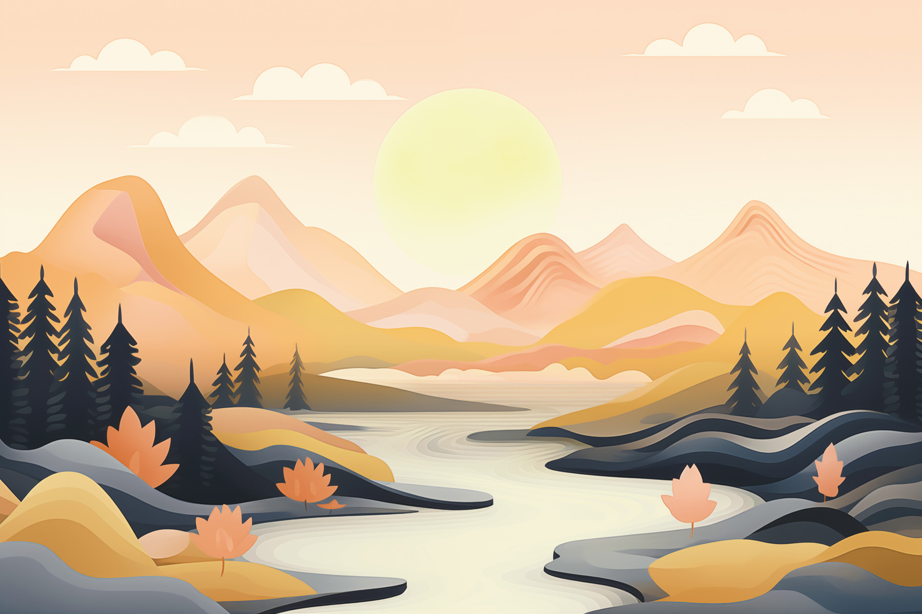 Imagine tener una ventana abierta a un río que serpentea tranquilamente por un valle sereno, enmarcado por montañas bañadas por una suave luz. Este mural no es sólo arte mural, es como tener un momento de paz congelado en el tiempo. Perfecto para cualquier habitación en la que desee un poco de tranquilidad. Imagínese sentado con una taza de té, la belleza de la naturaleza adornando su espacio. Hay algo en esas suaves curvas y colores tranquilos que susurran relajación. Es como un abrazo de la naturaleza, pero sin insectos. Ideal, ¿eh?