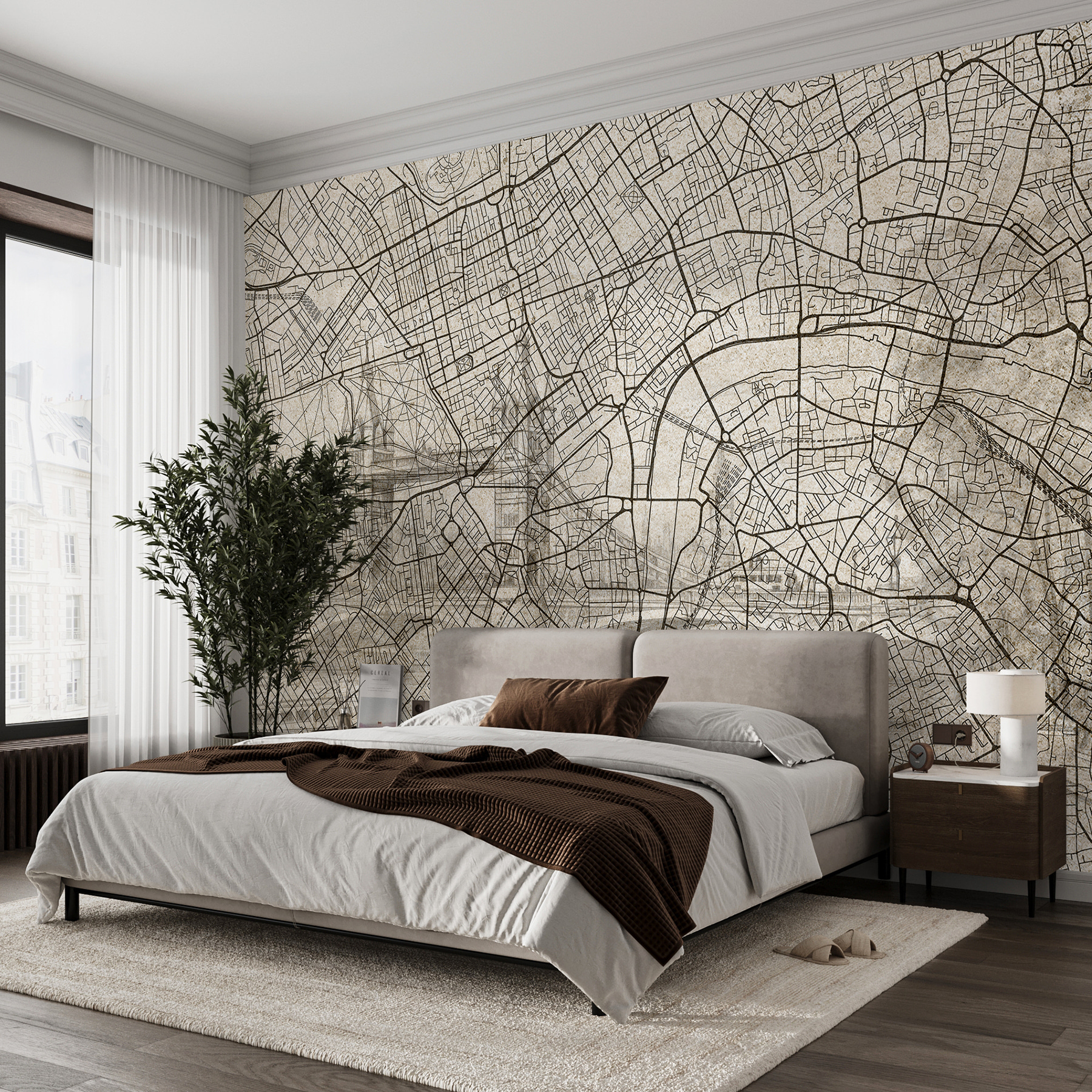 ¿Alguna vez has soñado con que un paisaje urbano se adueñara de tu pared? Este mural “Mapa de una ciudad” es la solución. Es como tener una ventana al mundo sin los molestos billetes de avión. Perfecto para los que adoran pasear, pero también adoran su sofá. Tiene ese encanto vintage -como un viejo mapa de una película de piratas- que da a tu espacio un toque de aventura. Imagínate tomando café, trazando rutas con la mirada y planeando escapadas de ensueño. ¿Quién diría que una pared podría inspirar todo un viaje?