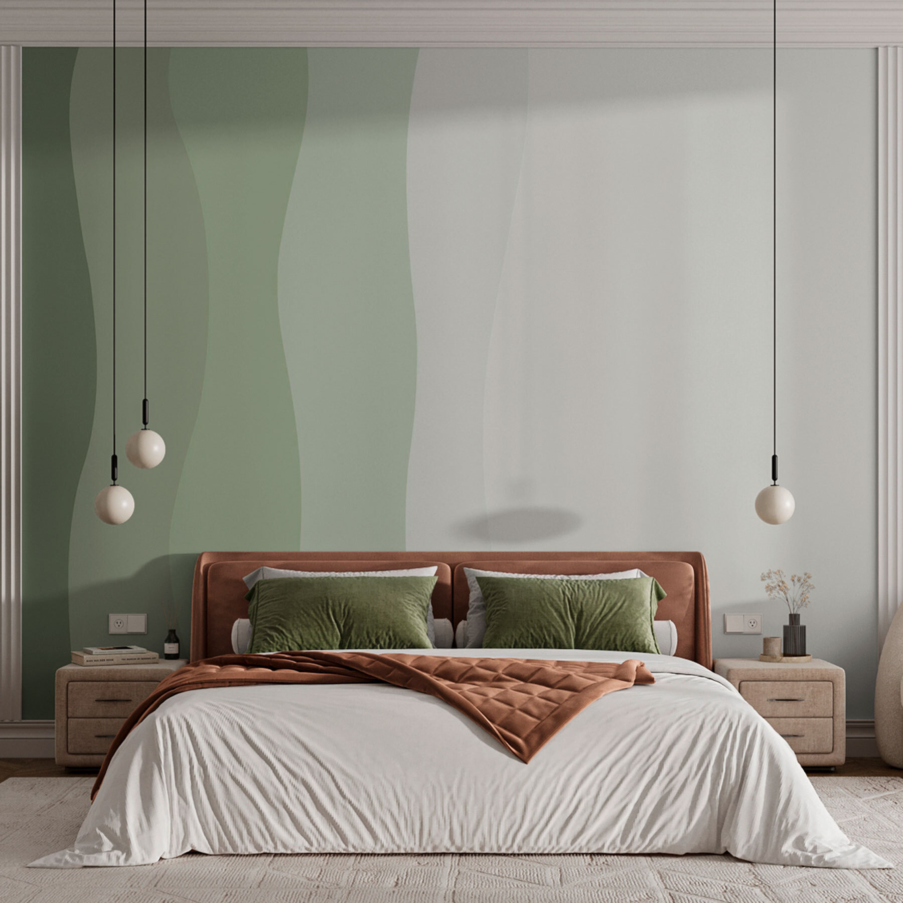 Fotomurales Líneas onduladas verdes y blancas (SKU: w01724v2)