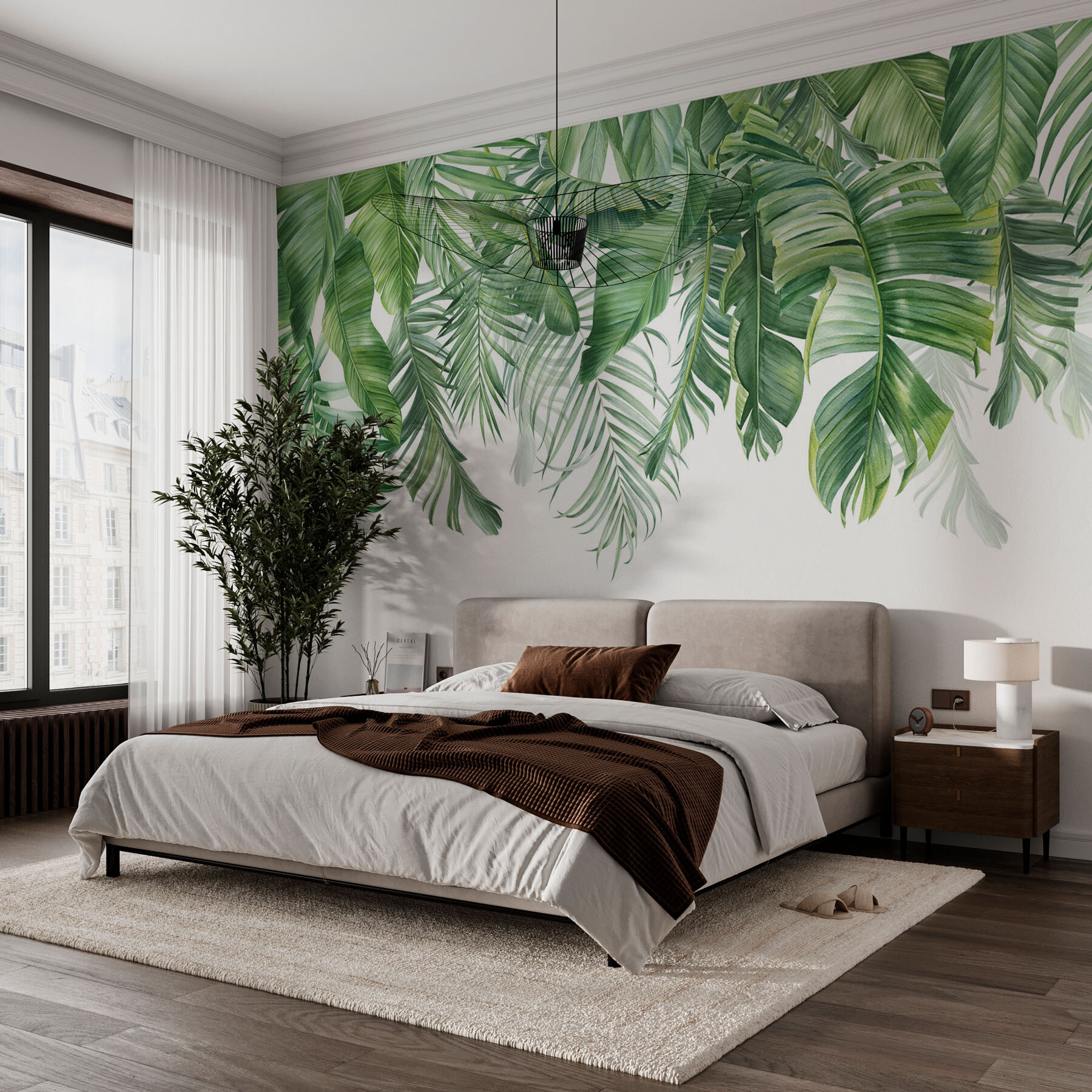 Imagínese entrar en una habitación y sentir al instante que está en medio de una selva tropical. Eso es lo que hace el mural “Fila de hojas verdes”: trae el aire libre a su espacio vital. Este mural es como una brisa fresca en un día caluroso, refrescante y relajante. Las exuberantes hojas verdes añaden un toque de naturaleza vibrante, perfecto para romper con esas aburridas paredes blancas. Además, es un gran tema de conversación: ¡puede que tus amigos te pregunten si te has convertido en botánico en secreto! Perfecto para añadir un toque de vida, sin necesidad de regar.