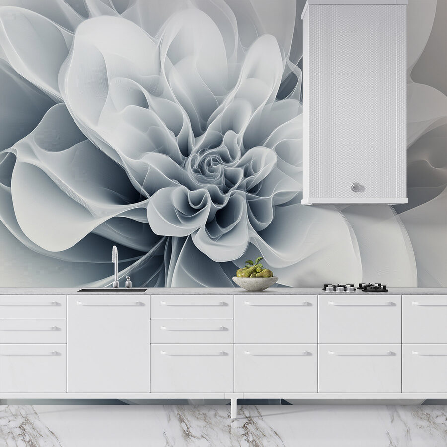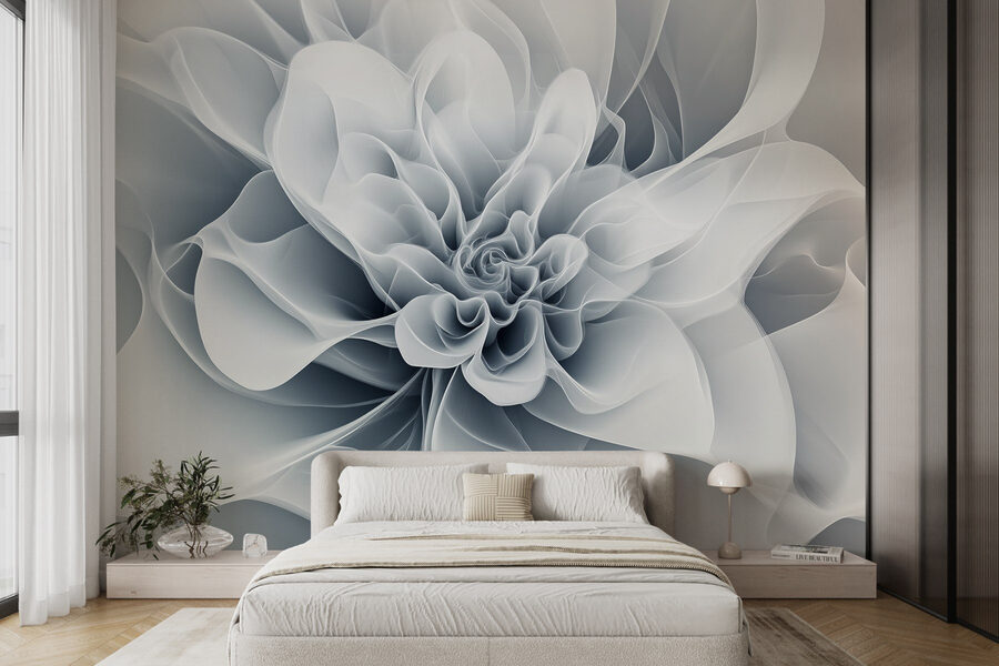 Imagínese entrar en una habitación y sentirse instantáneamente más sofisticado: este mural hace exactamente eso. Es como envolver las paredes en un suave abrazo de flores arremolinadas que susurran elegancia. ¿La paleta monocromática? Una mezcla perfecta de modernidad y encanto clásico. Imagínate un domingo tranquilo, con un café en la mano, disfrutando de la calma que aporta este diseño. Es casi como si la habitación respirara hondo y dijera: “Ah, así está mejor”. ¿Quién iba a decir que el arte podía ser como un buen amigo, siempre haciendo las cosas un poco más acogedoras?