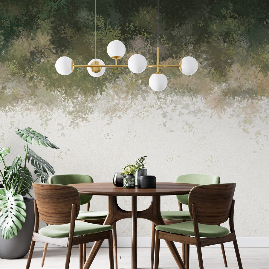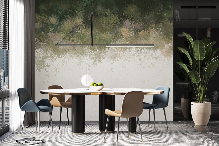Imagine un día que se convierte en noche en el interior de su habitación. El mural “Tonos de atardecer que se mezclan con la noche” es como el gran final de la naturaleza: suaves verdes boscosos que salpican delicadas sombras. Es como si un bosque mágico decidiera acampar en tu pared. Perfecto para esas noches acogedoras en las que te acurrucas con un libro o simplemente sueñas despierto. Este mural susurra tranquilidad con un toque de fantasía. Imagínese a un invitado que entre y se detenga -sólo para contemplarlo- preguntándose cómo ha capturado el crepúsculo. Parece serenidad, ¿verdad?
