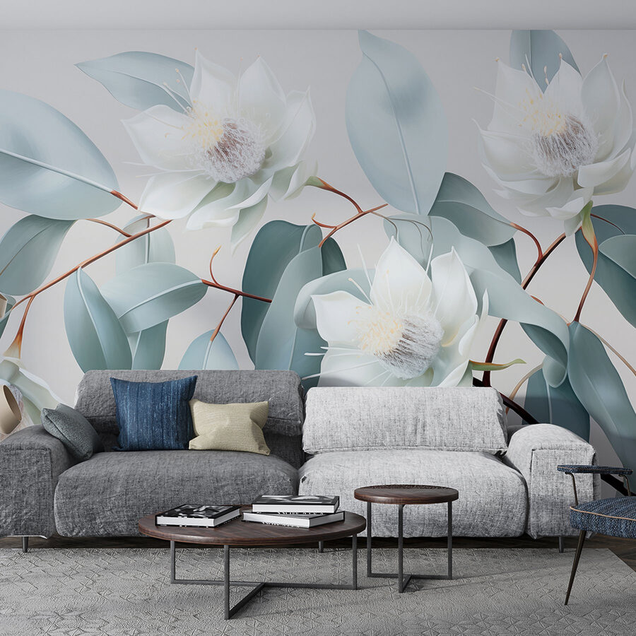 Fotomurales Grupo de flores blancas y hojas verdes