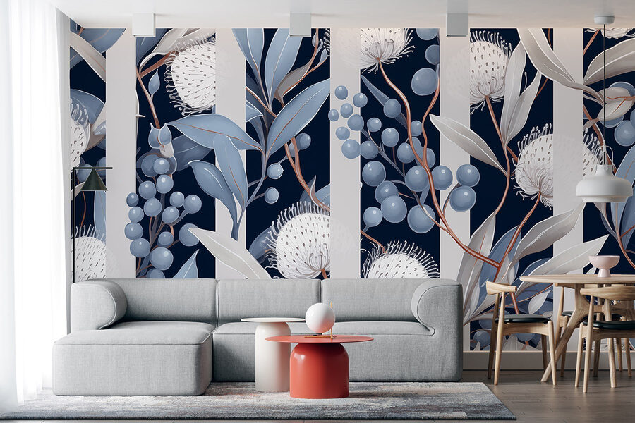 Aquí tienes un mural que hará que tus paredes te susurren dulces palabras cada mañana. Imagina despertarte con este encantador baile de flores azules y blancas, como un jardín secreto escondido en tu habitación. Las hojas se enroscan en suaves bucles, mientras que las flores -oh, las flores- giran como si estuvieran atrapadas en un ballet de brisa. Colócalo en tu salón y observa cómo fluyen las conversaciones, inspiradas por el arte de la naturaleza. Es como tener en casa un pedazo de serena belleza de otro mundo. ¿No es encantador?