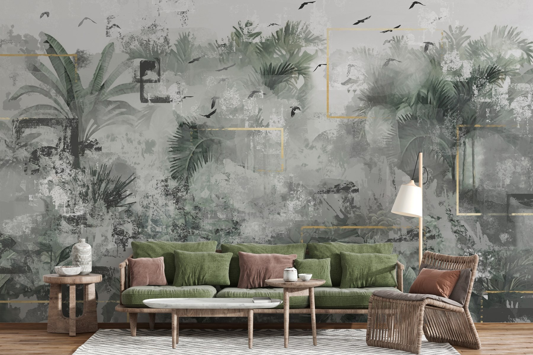 Con una intrigante mezcla de tonos tierra y texturas, añade profundidad y calidez, haciendo que cualquier habitación resulte instantáneamente más acogedora. Puede que los pájaros empiecen a piar en tu salón (vale, quizá sea un poco exagerado, pero te haces una idea). Perfecto para quienes desean un toque de naturaleza en el interior, este mural invita a la relajación y a soñar despierto. Imagínese que se adentra en una pequeña selva cada día; ¡es como pasar unas vacaciones interminables en casa!