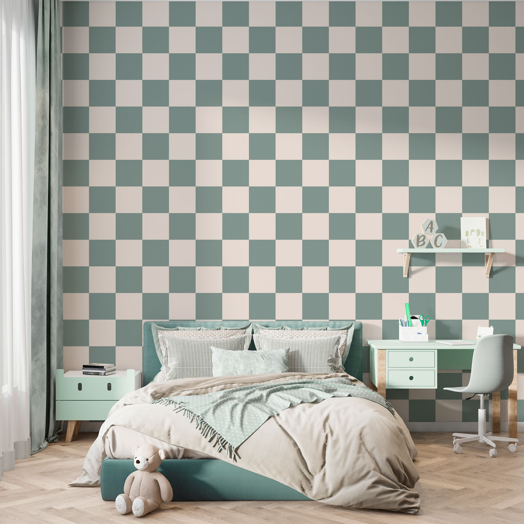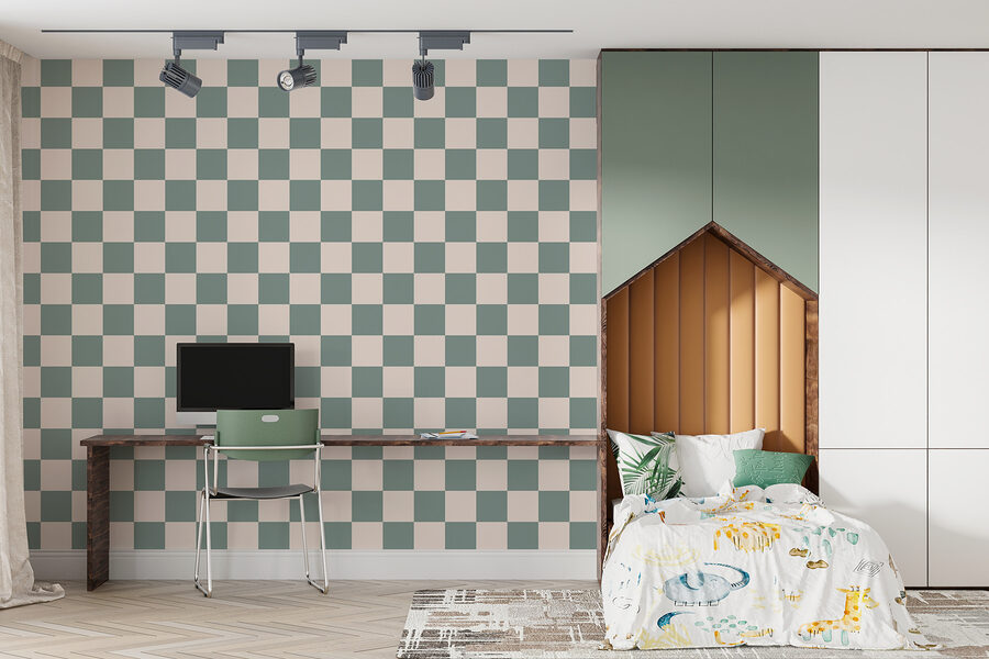 Transforme cualquier pared en un deleite visual con este divertido mural que presenta un patrón de cuadrados. Es como un mantel retro, atractivo y acogedor. Imagínatelo: entra en una habitación y siéntete como en casa al instante, todo gracias a ese divertido diseño que capta la luz a la perfección.